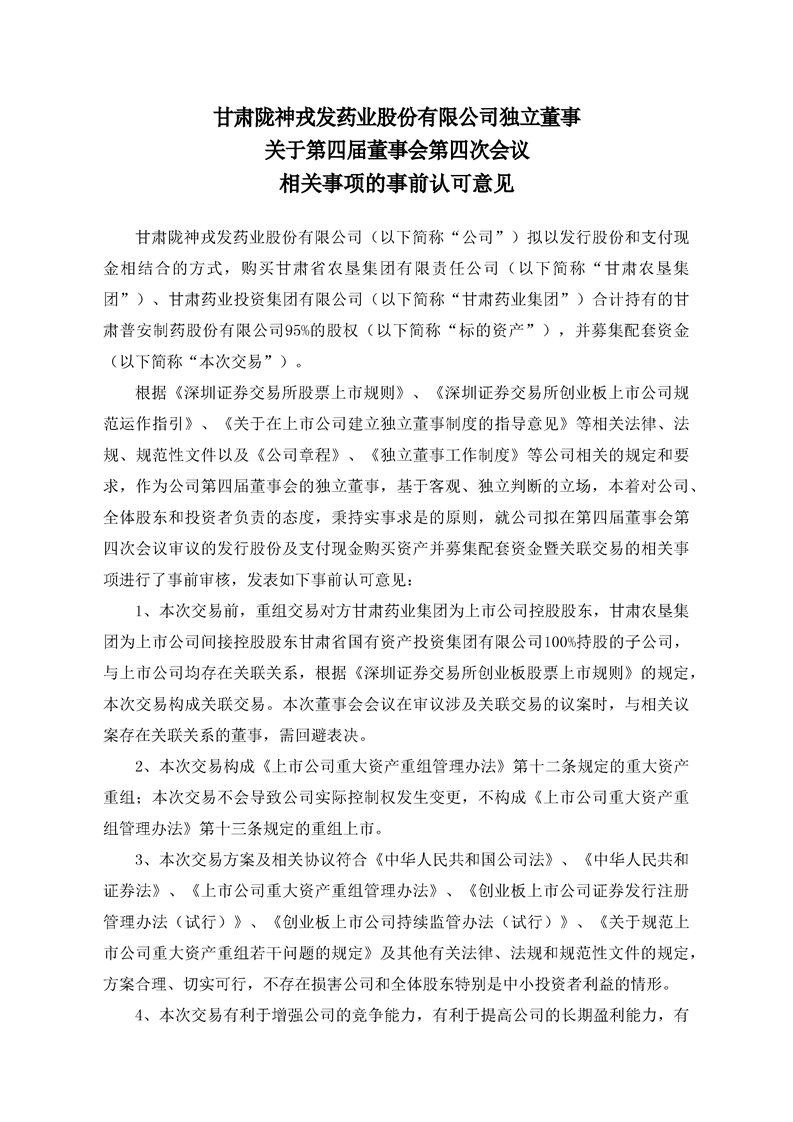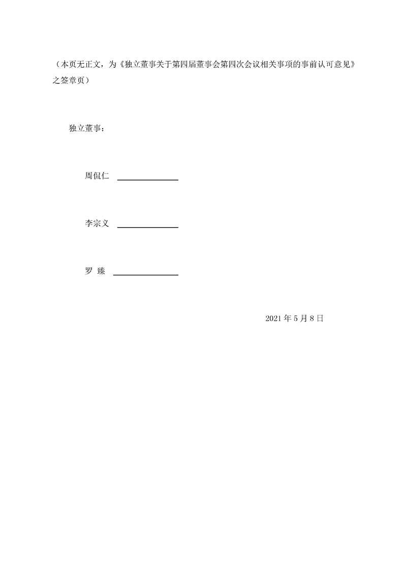 獨立董事關(guān)于第四屆董事會第四次會議相關(guān)事項的事前認可的意見
