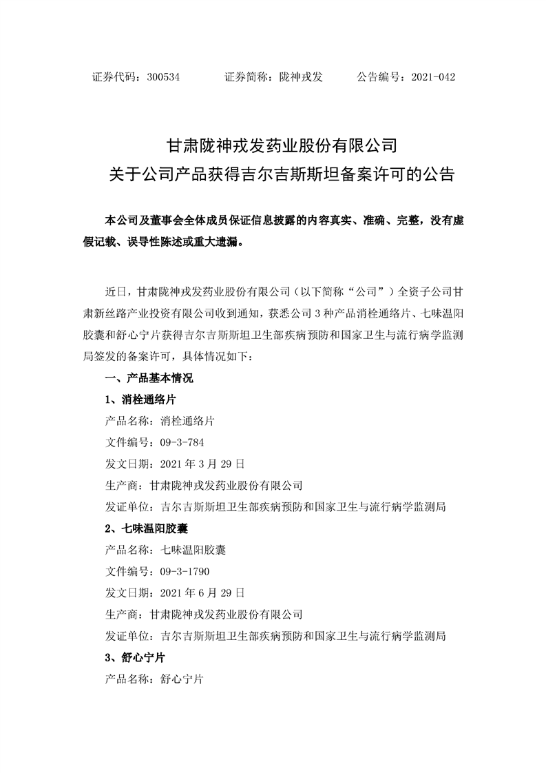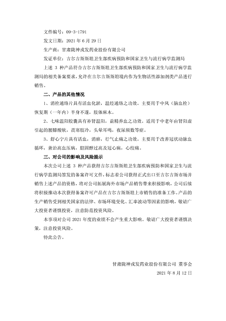 關(guān)于公司產(chǎn)品獲得吉爾吉斯斯坦備案許可的公告