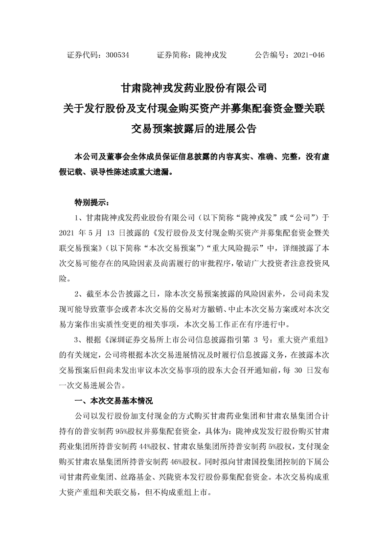 關(guān)于發(fā)行股份及支付現(xiàn)金購買資產(chǎn)并募集配套資金暨關(guān)聯(lián)交易預(yù)案披露后的進展公告