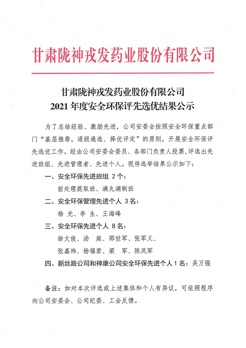 2021年度安全環(huán)保評先選優(yōu)結(jié)果公示