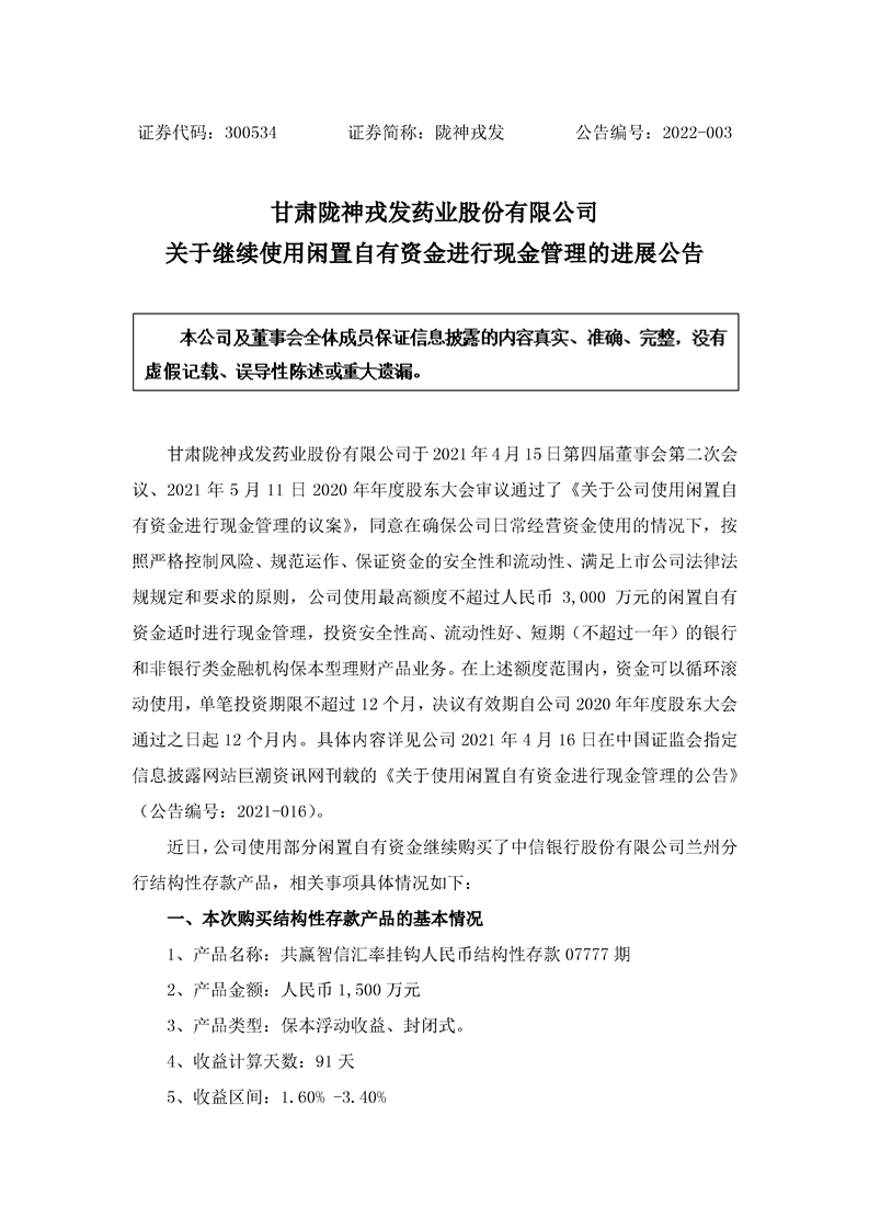 關(guān)于繼續(xù)使用閑置自有資金進(jìn)行現(xiàn)金管理的進(jìn)展公告