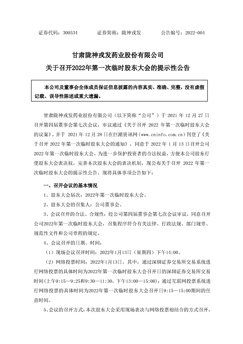 關(guān)于召開2022年第一次臨時股東大會的提示性公告