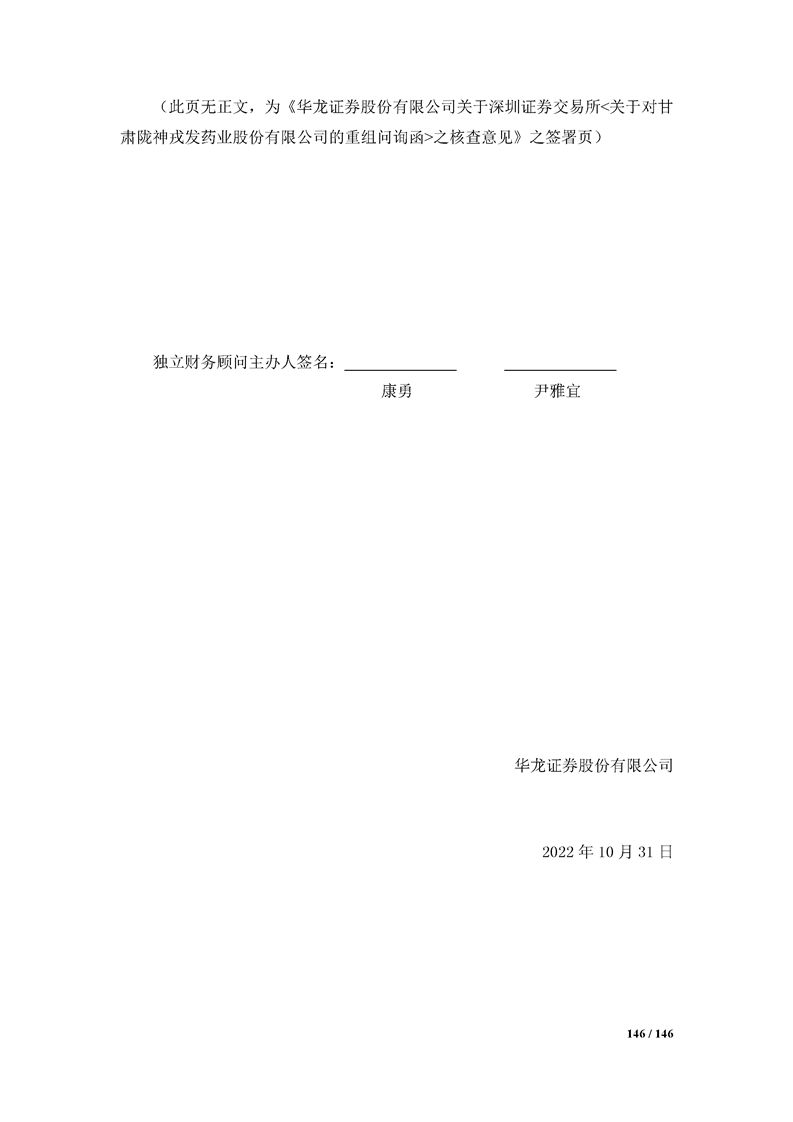 華龍證券股份有限公司關(guān)于深圳證券交易所《關(guān)于對(duì)甘肅隴神戎發(fā)藥業(yè)股份有限公司的重組問(wèn)詢(xún)函》之核查意見(jiàn)