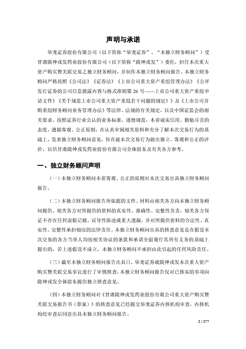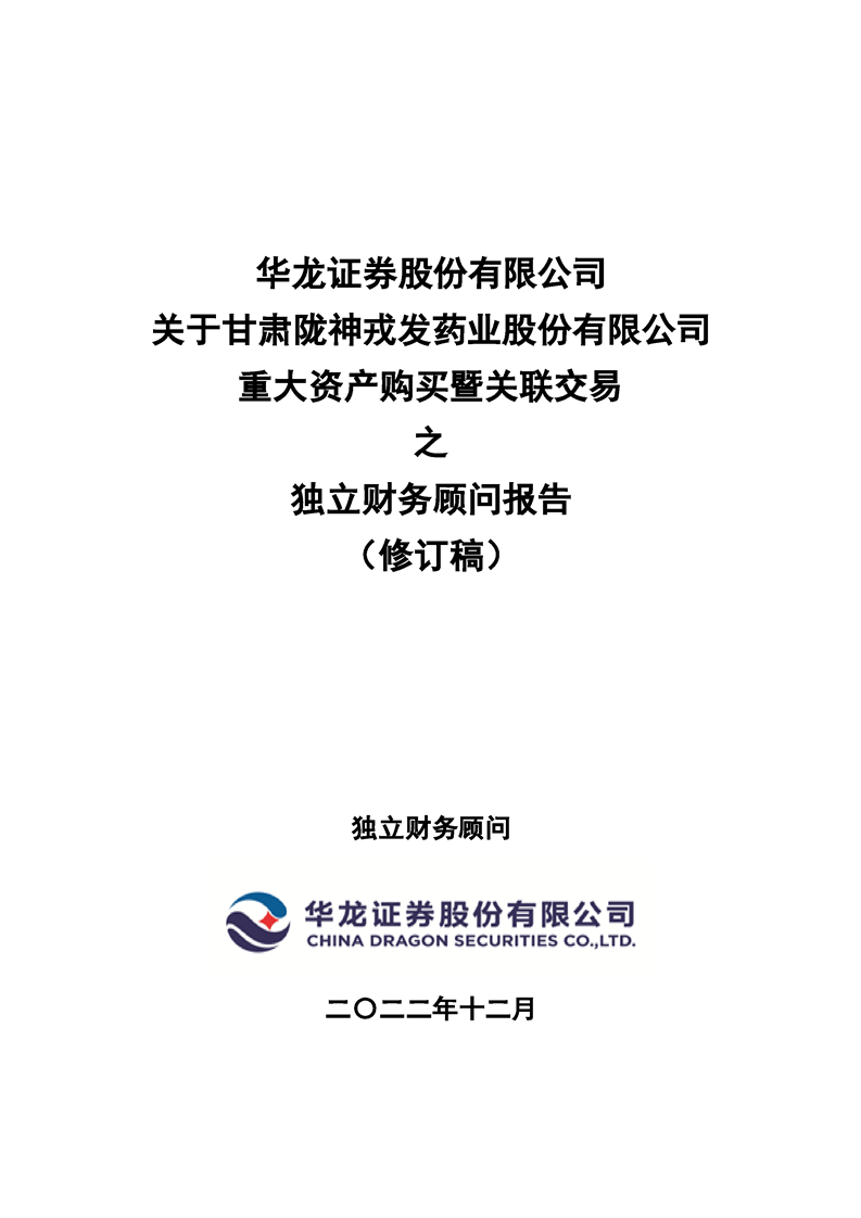 華龍證券股份有限公司關(guān)于甘肅隴神戎發(fā)藥業(yè)股份有限公司重大資產(chǎn)購買暨關(guān)聯(lián)交易之獨立財務(wù)顧問報告(二次修訂稿)