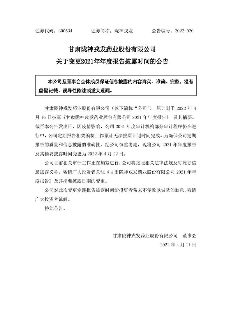 關(guān)于變更2021年年度報告披露時間的公告