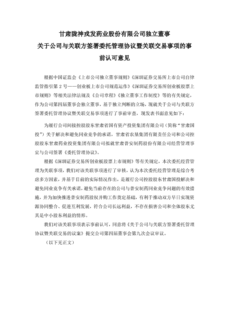 獨(dú)立董事關(guān)于公司與關(guān)聯(lián)方簽署委托管理協(xié)議暨關(guān)聯(lián)交易事項(xiàng)的事前認(rèn)可意見