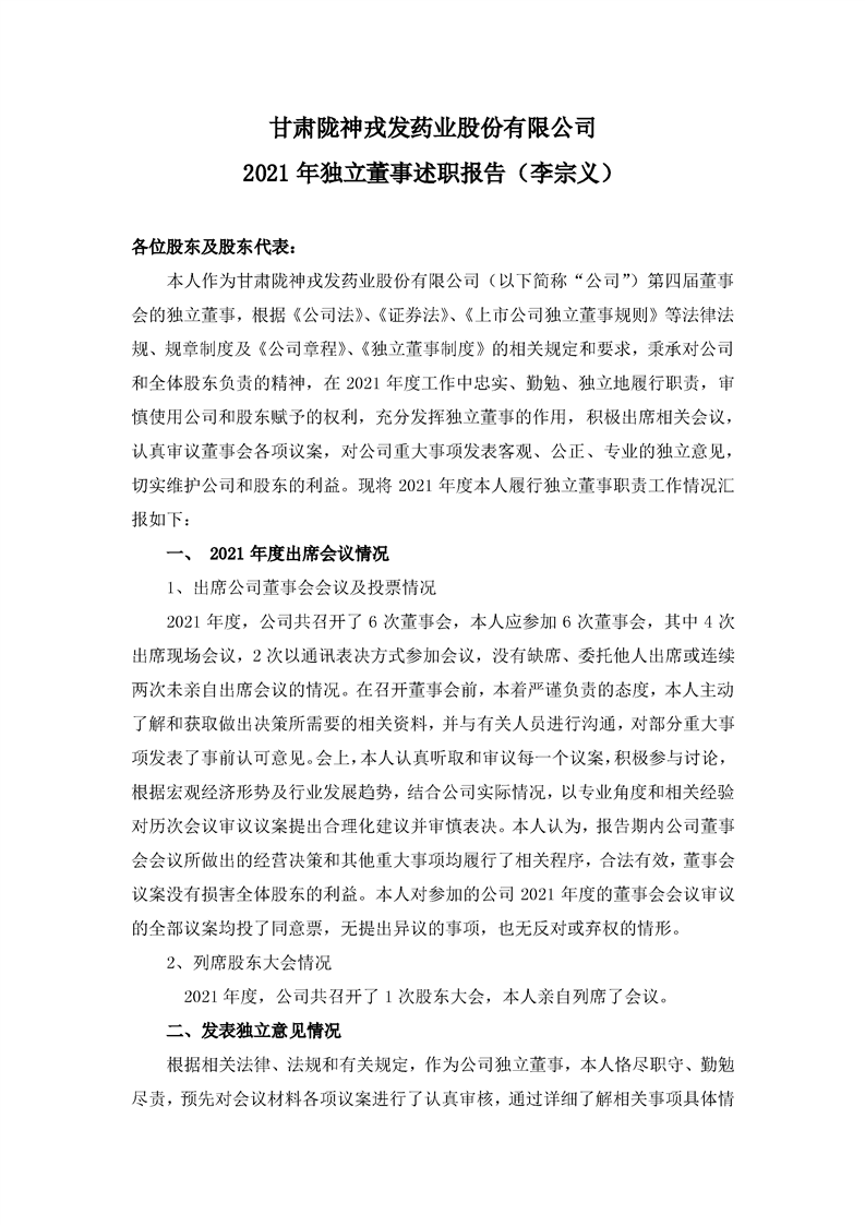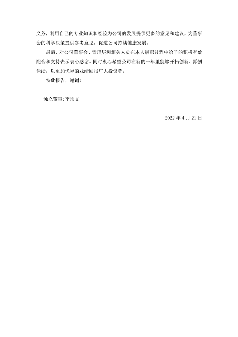 2021年獨(dú)立董事述職報告(李宗義)