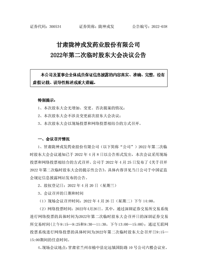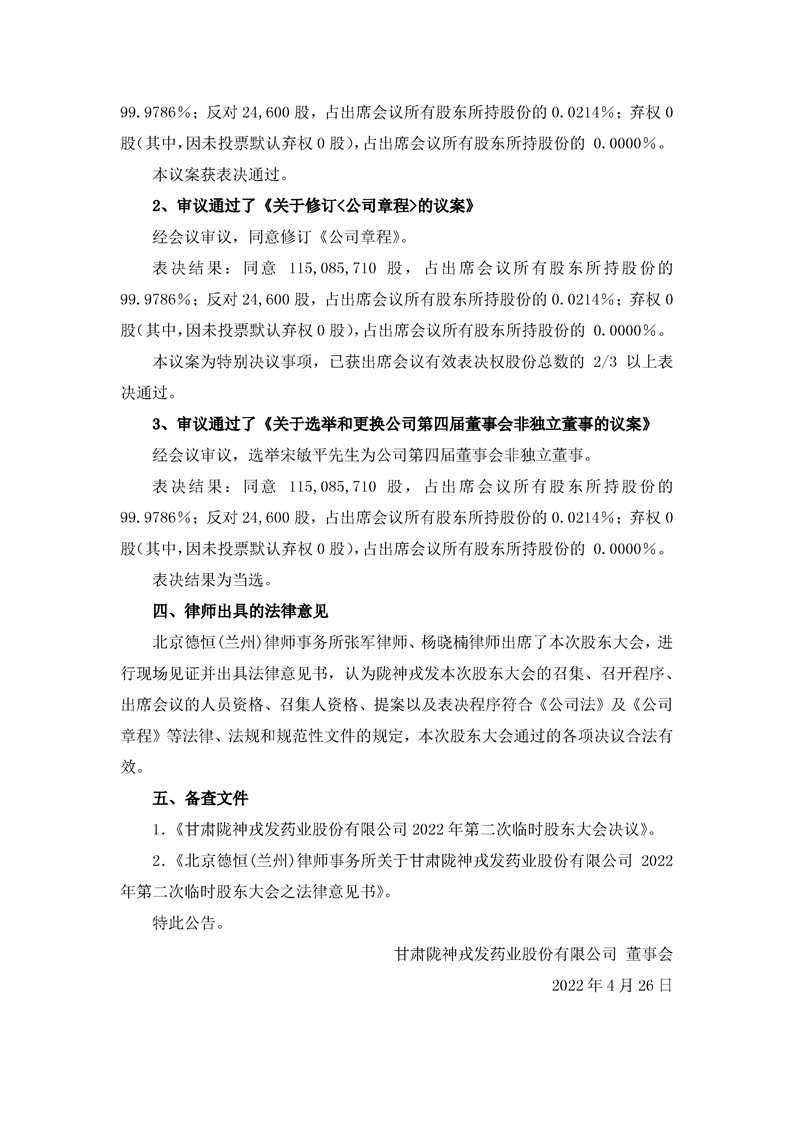 2022年第二次臨時股東大會決議公告