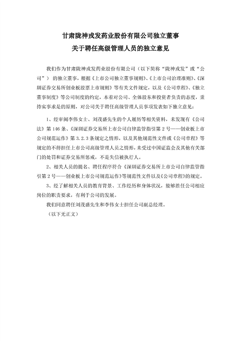 獨(dú)立董事關(guān)于聘任高級管理人員的獨(dú)立意見