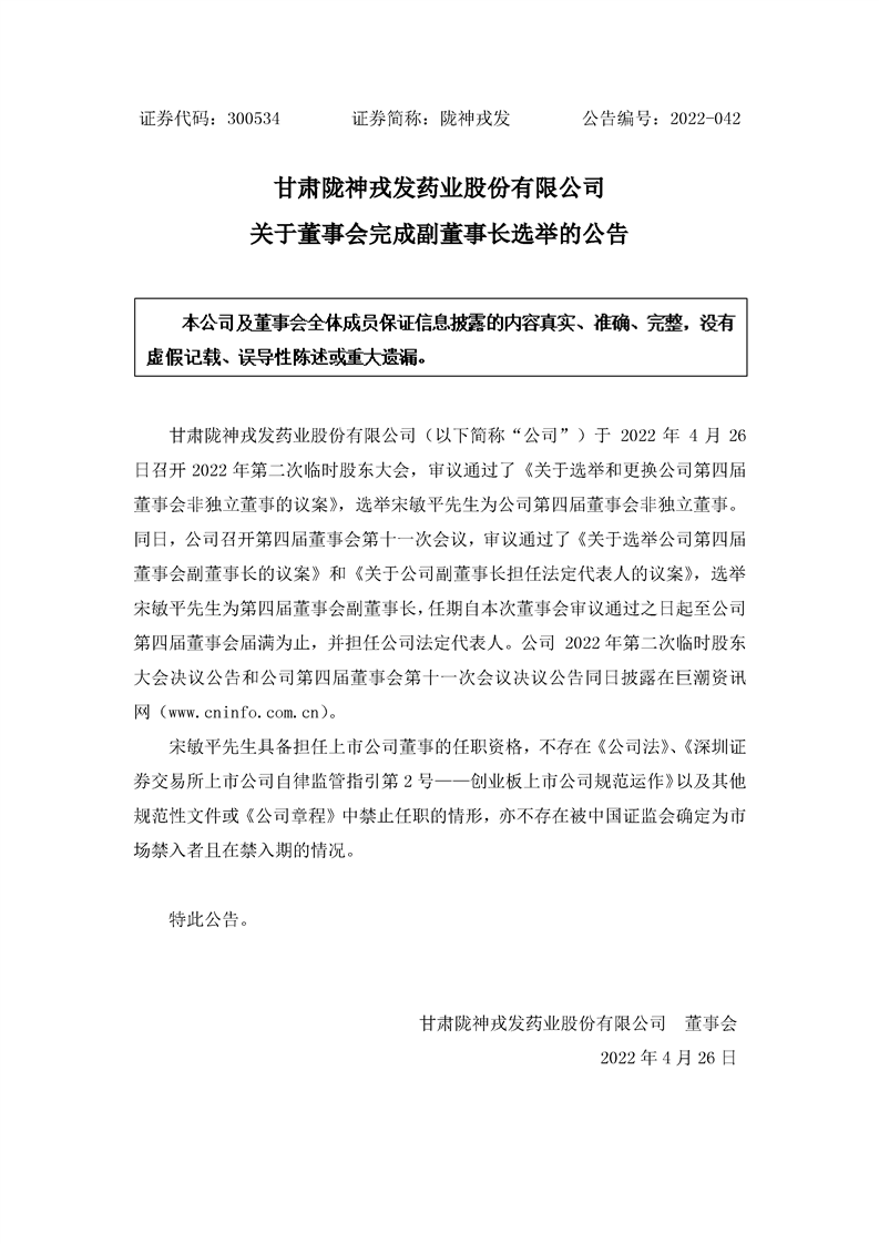 關(guān)于董事會完成副董事長選舉的公告