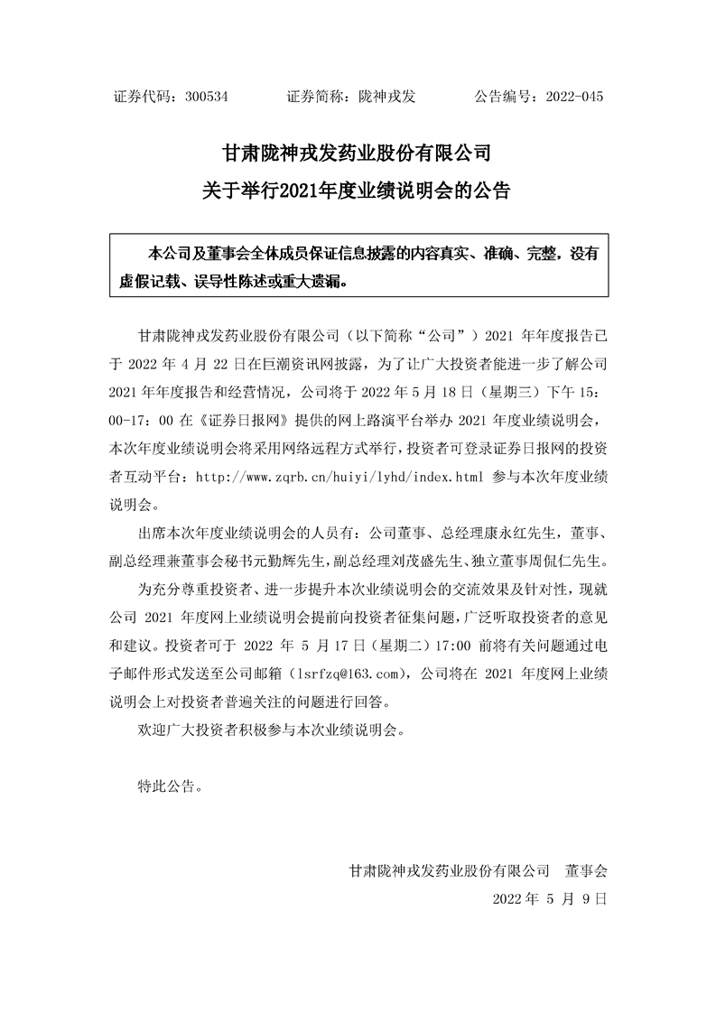 關(guān)于舉行2021年度業(yè)績(jī)說(shuō)明會(huì)的公告
