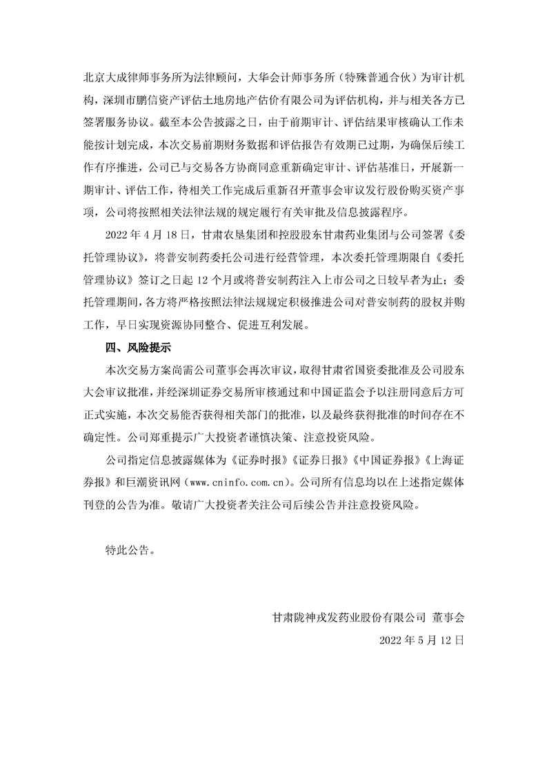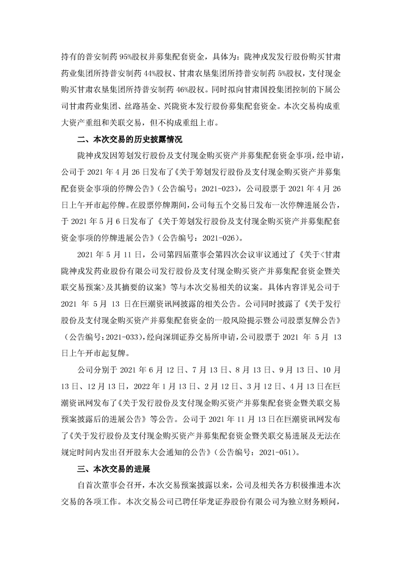 隴神戎發(fā):關于發(fā)行股份及支付現(xiàn)金購買資產(chǎn)并募集配套資金暨關聯(lián)交易預案披露后的進展公告