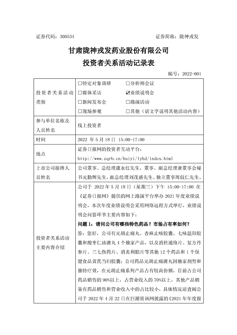 2021年度業(yè)績(jī)說(shuō)明會(huì)投資者關(guān)系活動(dòng)記錄表