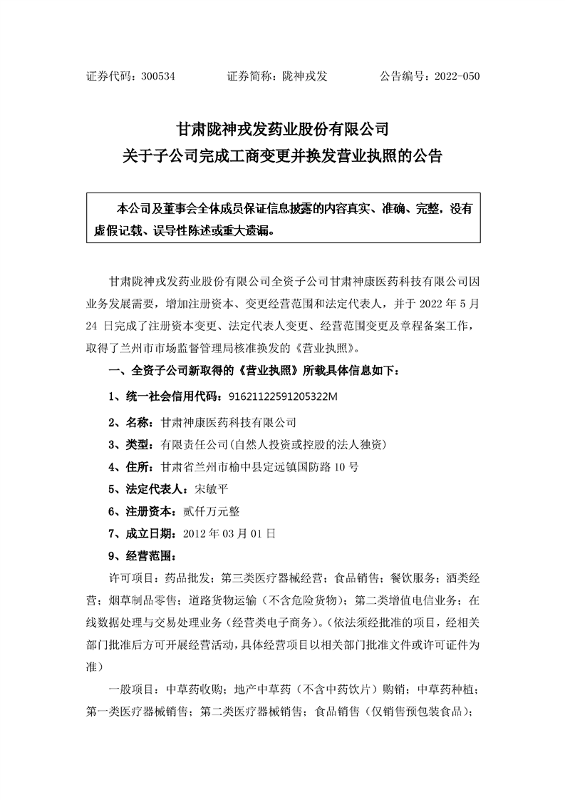 關(guān)于子公司完成工商變更并換發(fā)營業(yè)執(zhí)照的公告