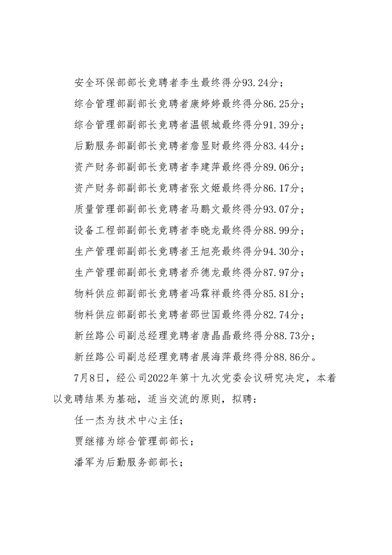關(guān)于中層管理干部競(jìng)聘成績(jī)及擬聘崗位的公示