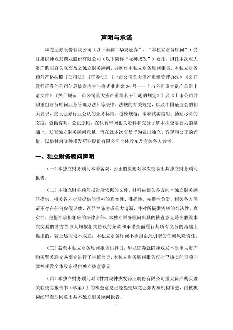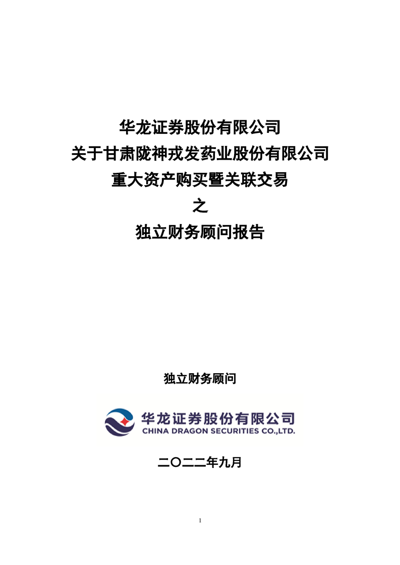 隴神戎發(fā):華龍證券股份有限公司關(guān)于甘肅隴神戎發(fā)藥業(yè)股份有限公司重大資產(chǎn)購買暨關(guān)聯(lián)交易之獨(dú)立財(cái)務(wù)顧問報(bào)告