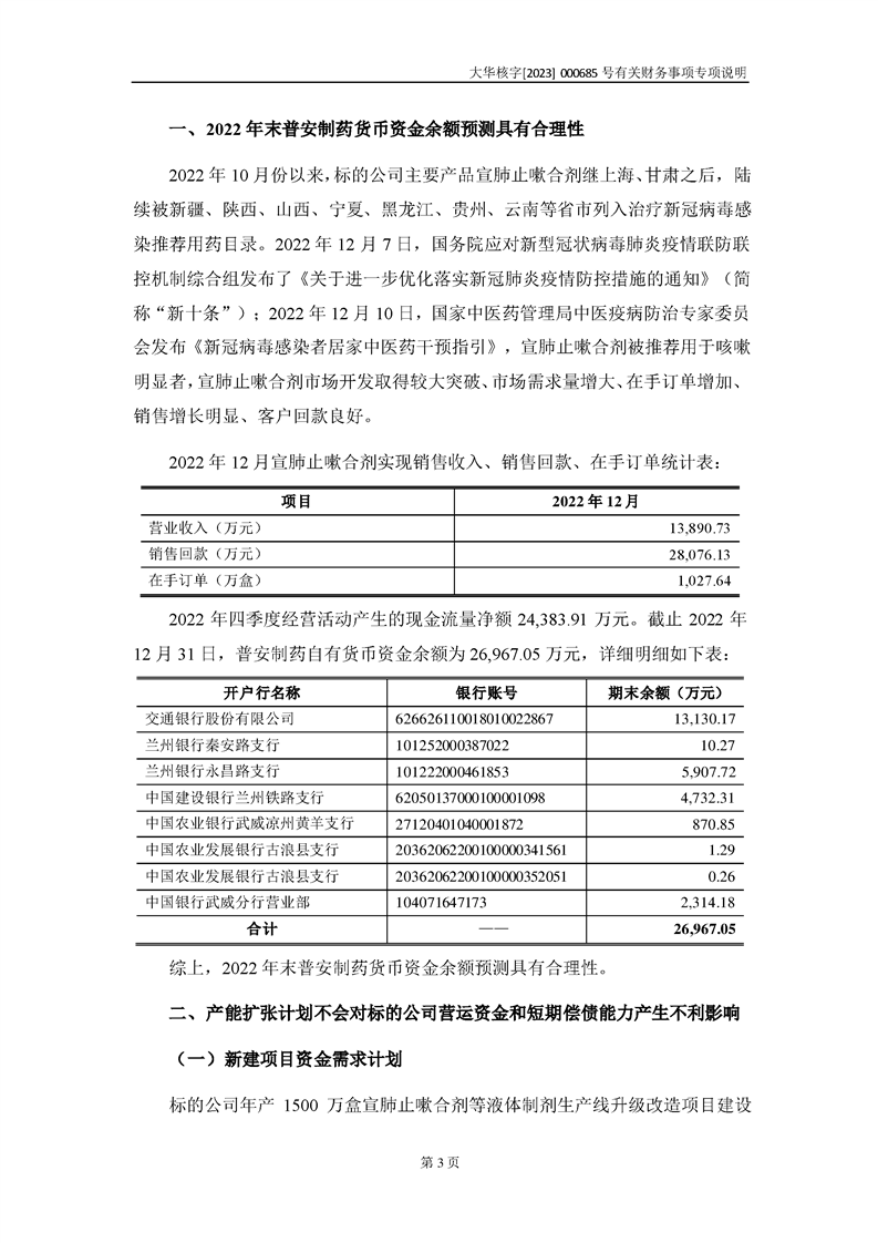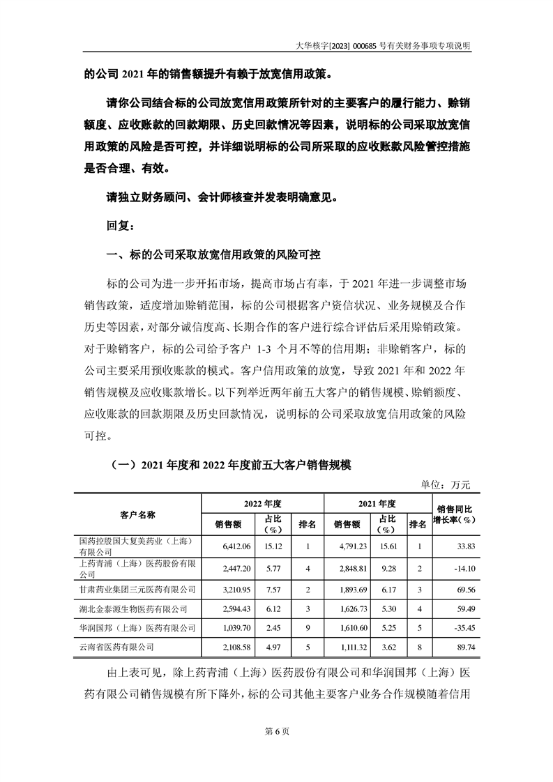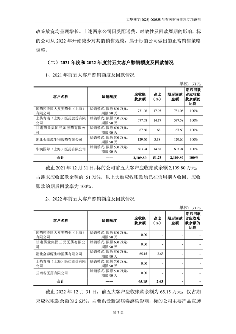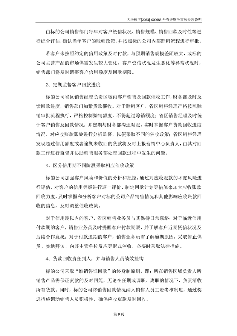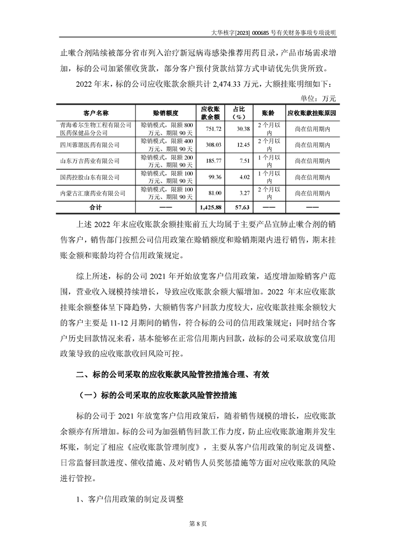 大華會計師事務所關于深圳證券交易所對甘肅隴神戎發(fā)藥業(yè)股份有限公司的重組問詢函中有關財務事項的專項說明-大華核字[2023]000685號