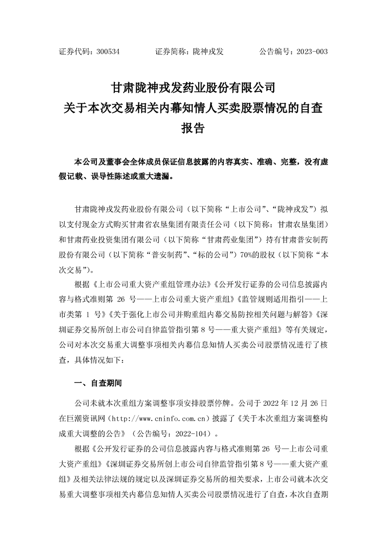 關(guān)于本次交易內(nèi)幕信息知情人買賣股票情況的自查報告