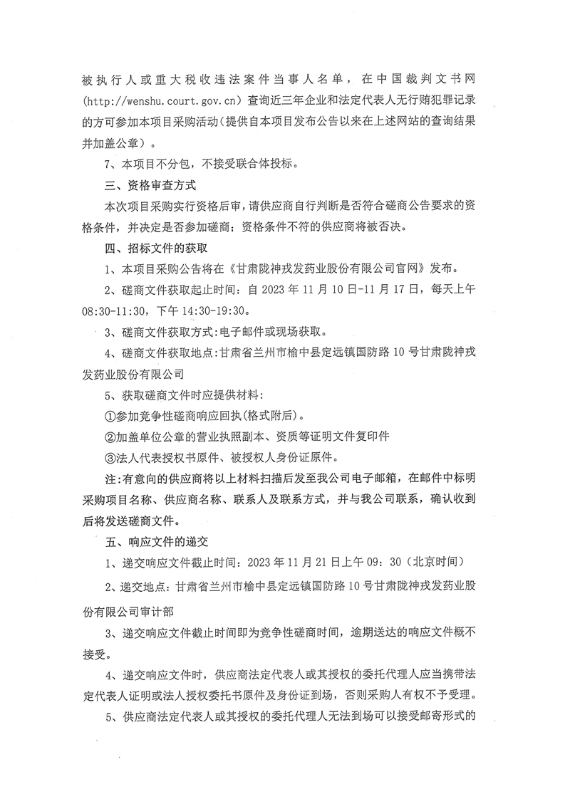 甘肅隴神戎發(fā)藥業(yè)股份有限公司生產(chǎn)線十二道機(jī)(1號(hào))包裝線設(shè)備升級(jí)改造項(xiàng)目(補(bǔ)袋機(jī))采購(gòu)第二次競(jìng)爭(zhēng)性磋商公告