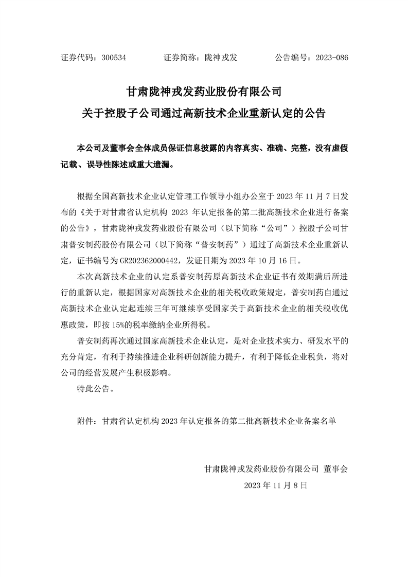關(guān)于控股子公司通過高新技術(shù)企業(yè)重新認(rèn)定的公告