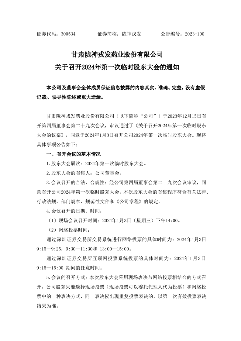 關(guān)于召開2024年第一次臨時股東大會的通知