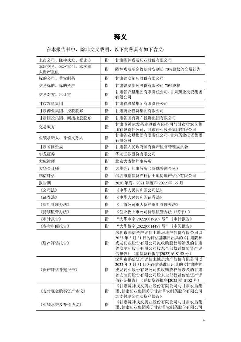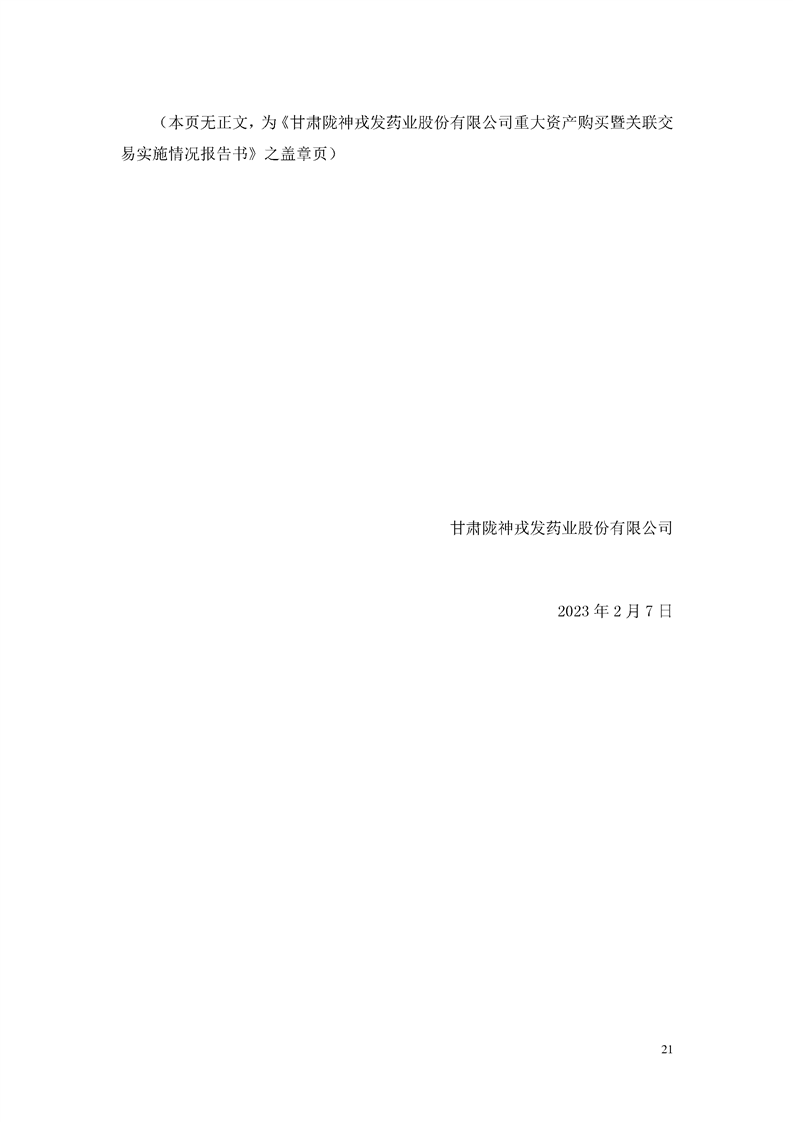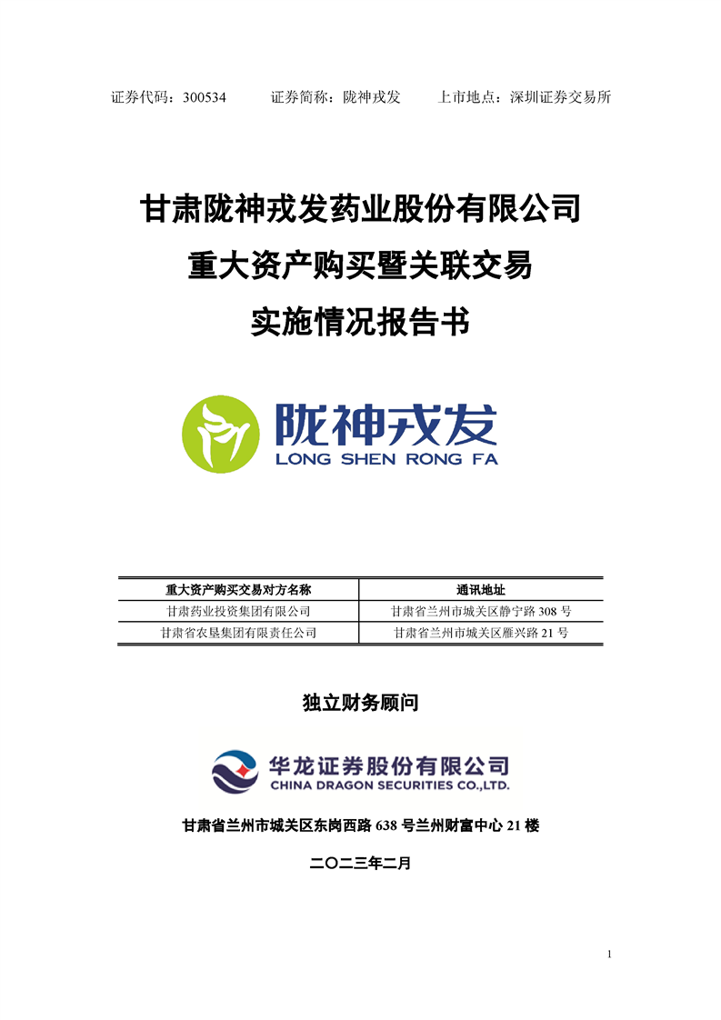 甘肅隴神戎發(fā)藥業(yè)股份有限公司重大資產(chǎn)購(gòu)買暨關(guān)聯(lián)交易實(shí)施情況報(bào)告書