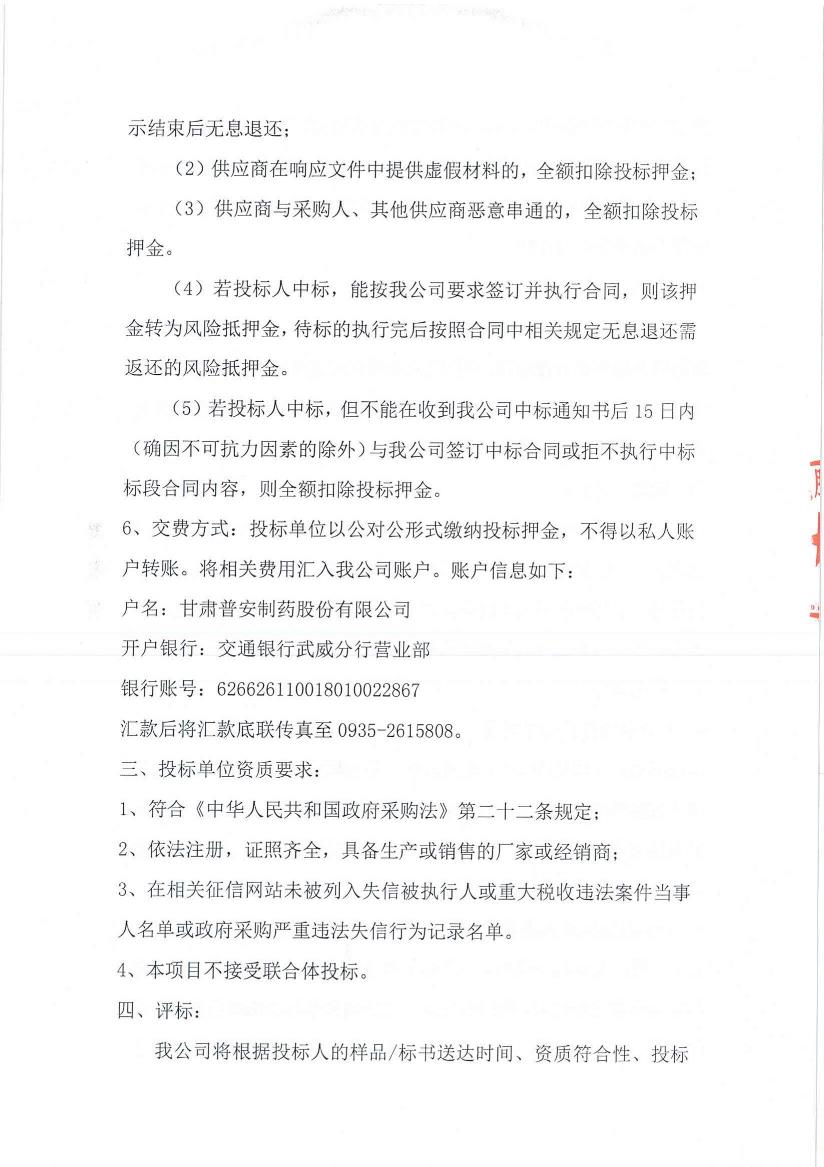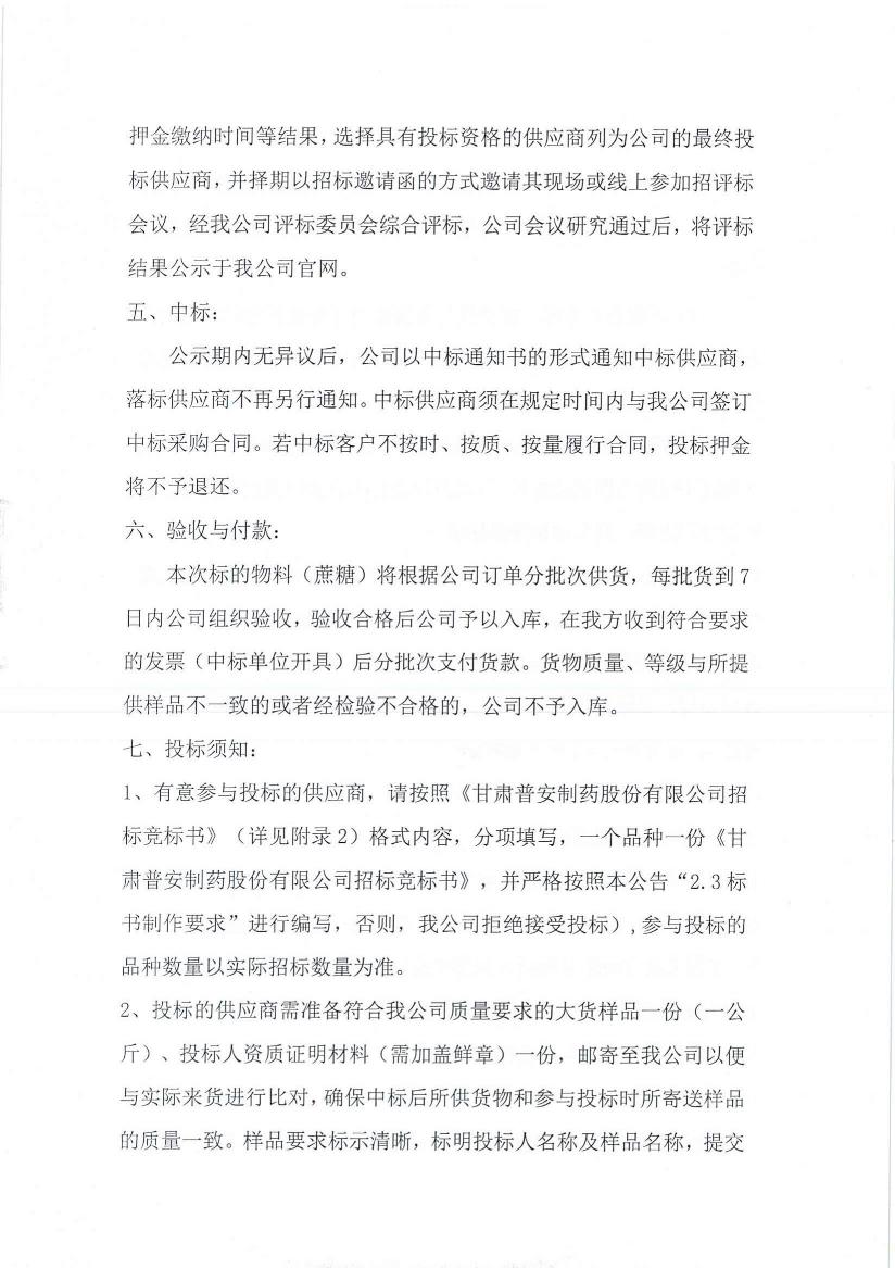 甘肅普安制藥股份有限公司2023年宣肺止嗽合劑物料(蔗糖)采購競爭性磋商公告