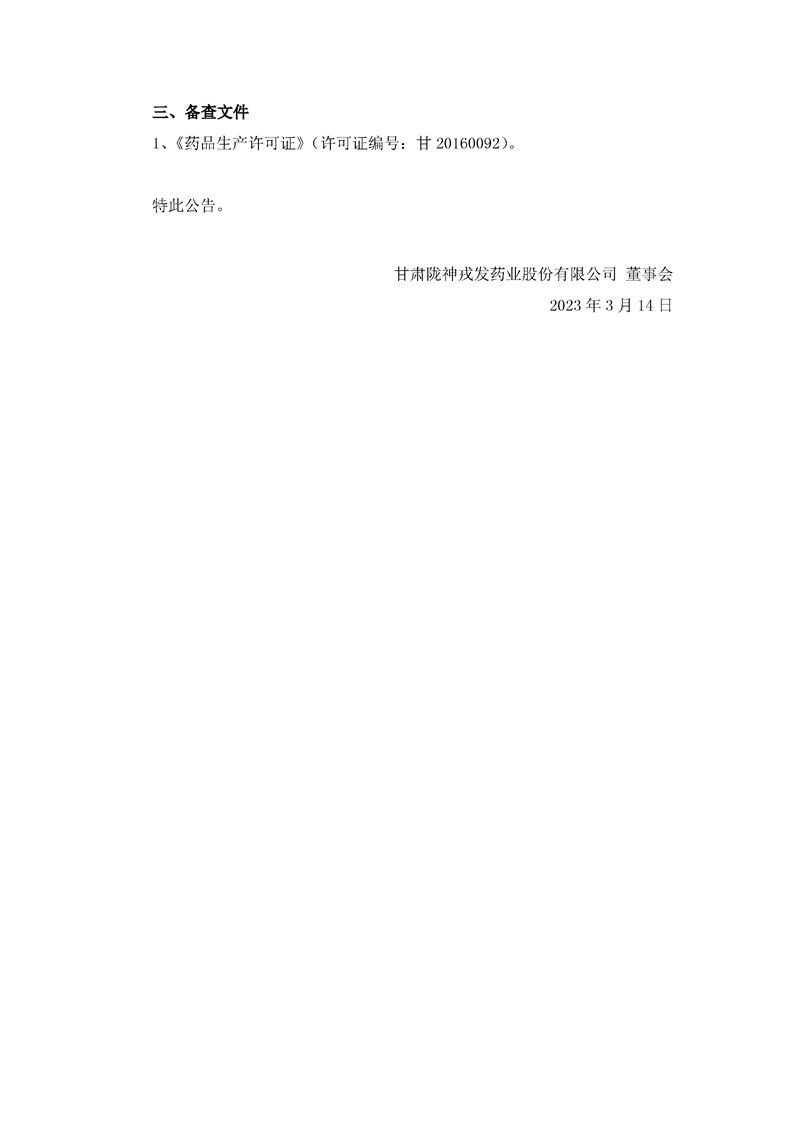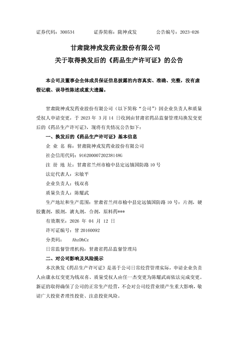 關于取得換發(fā)后的《藥品生產許可證》的公告