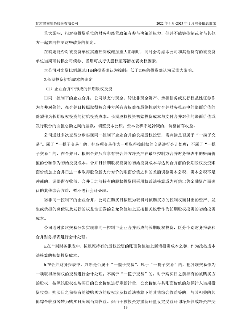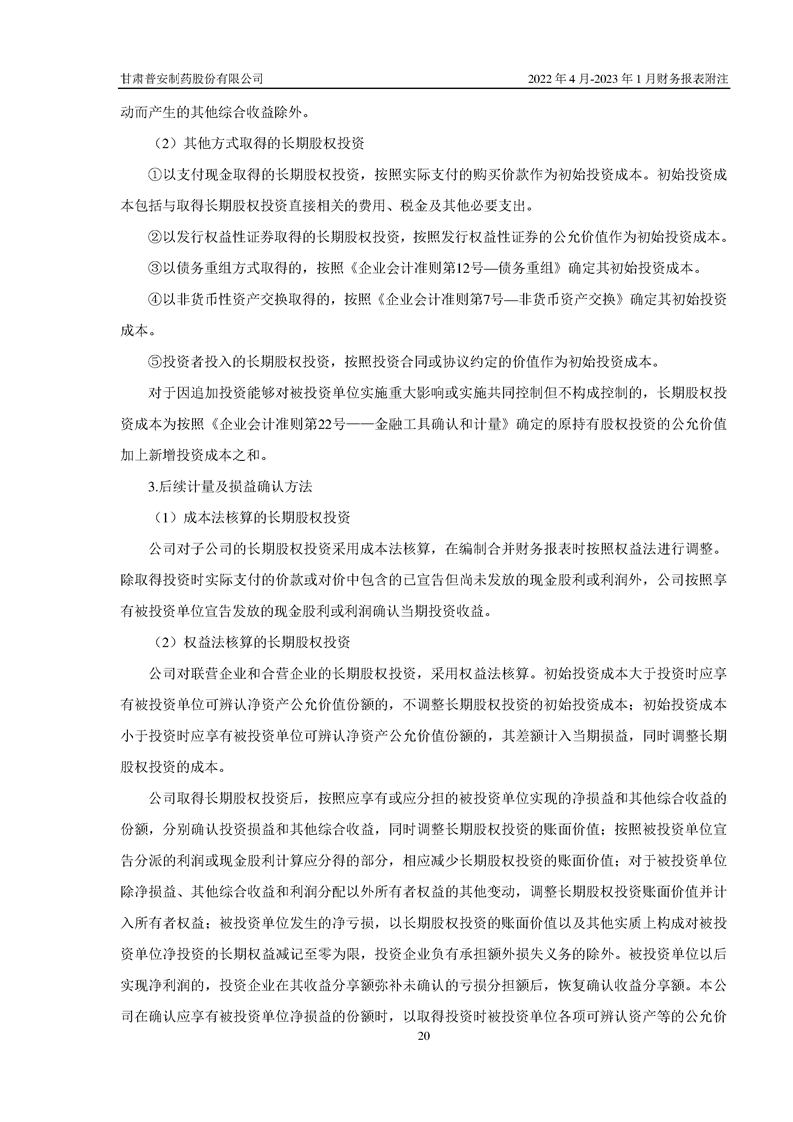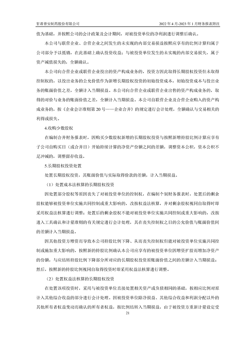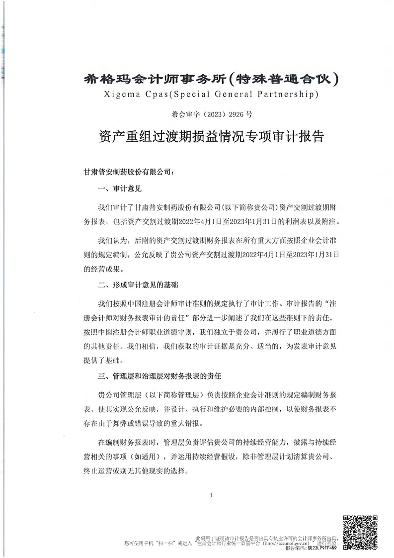 甘肅普安制藥股份有限公司資產(chǎn)重組過(guò)渡期損益情況專(zhuān)項(xiàng)審計(jì)報(bào)告