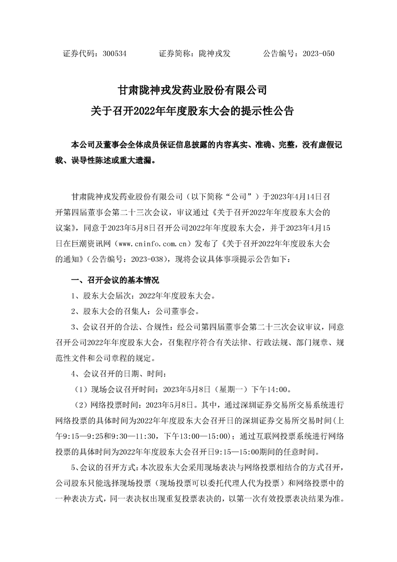 關(guān)于召開2022年年度股東大會(huì)的提示性公告