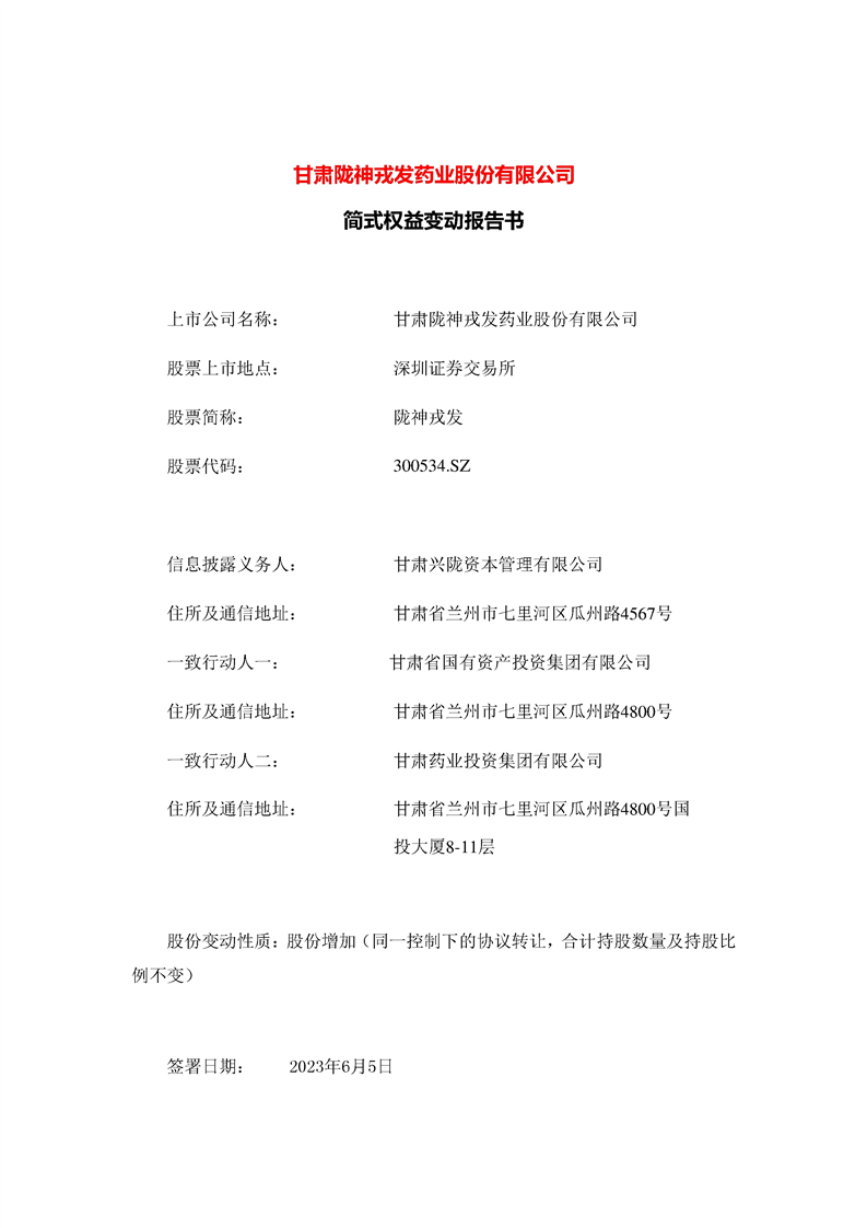 簡式權(quán)益變動(dòng)報(bào)告書(興隴資本)