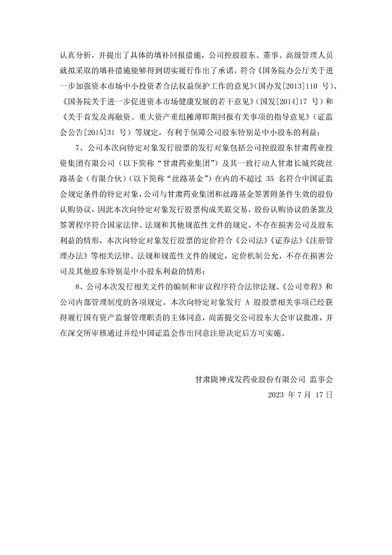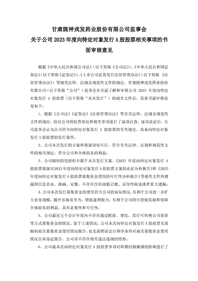 監(jiān)事會關(guān)于公司2023年度向特定對象發(fā)行A股股票相關(guān)事項的書面審核意見