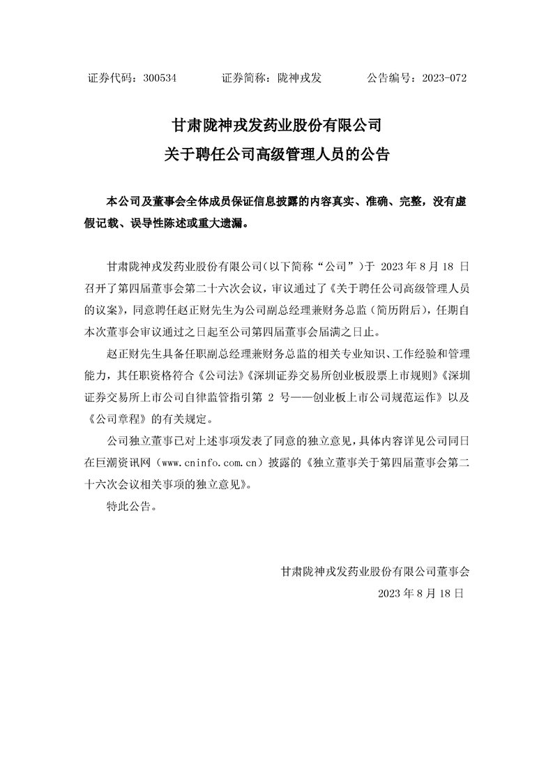 關(guān)于聘任公司高級管理人員的公告