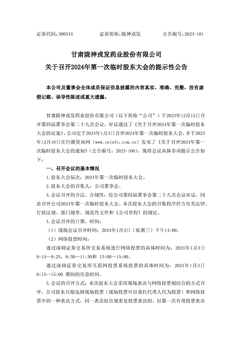 關(guān)于召開2024年第一次臨時(shí)股東大會(huì)的提示性公告