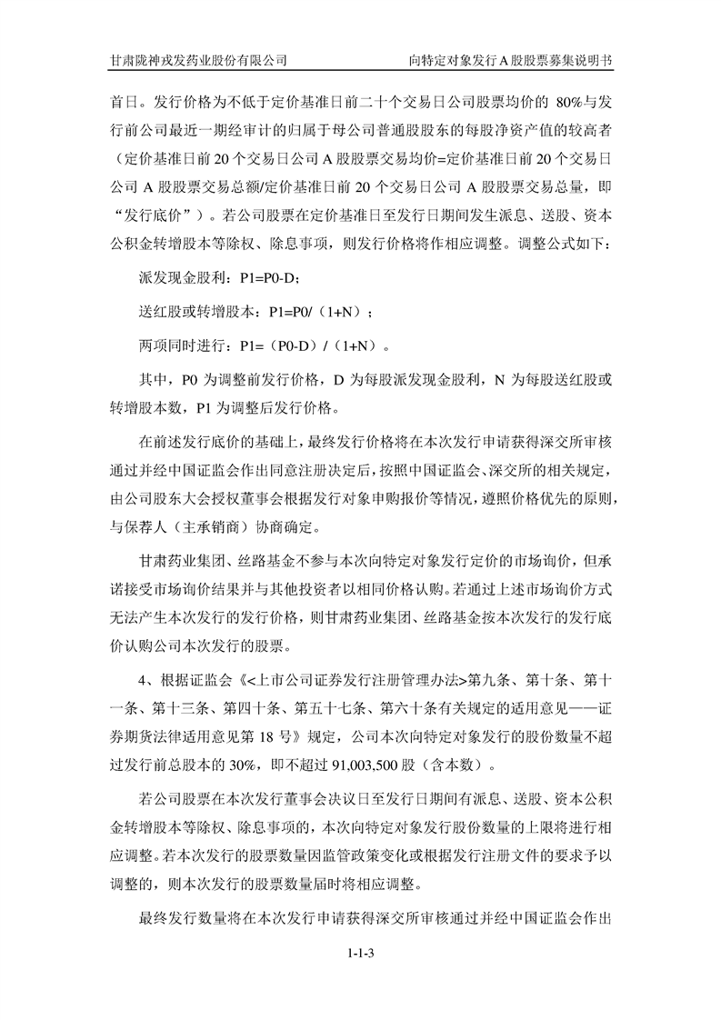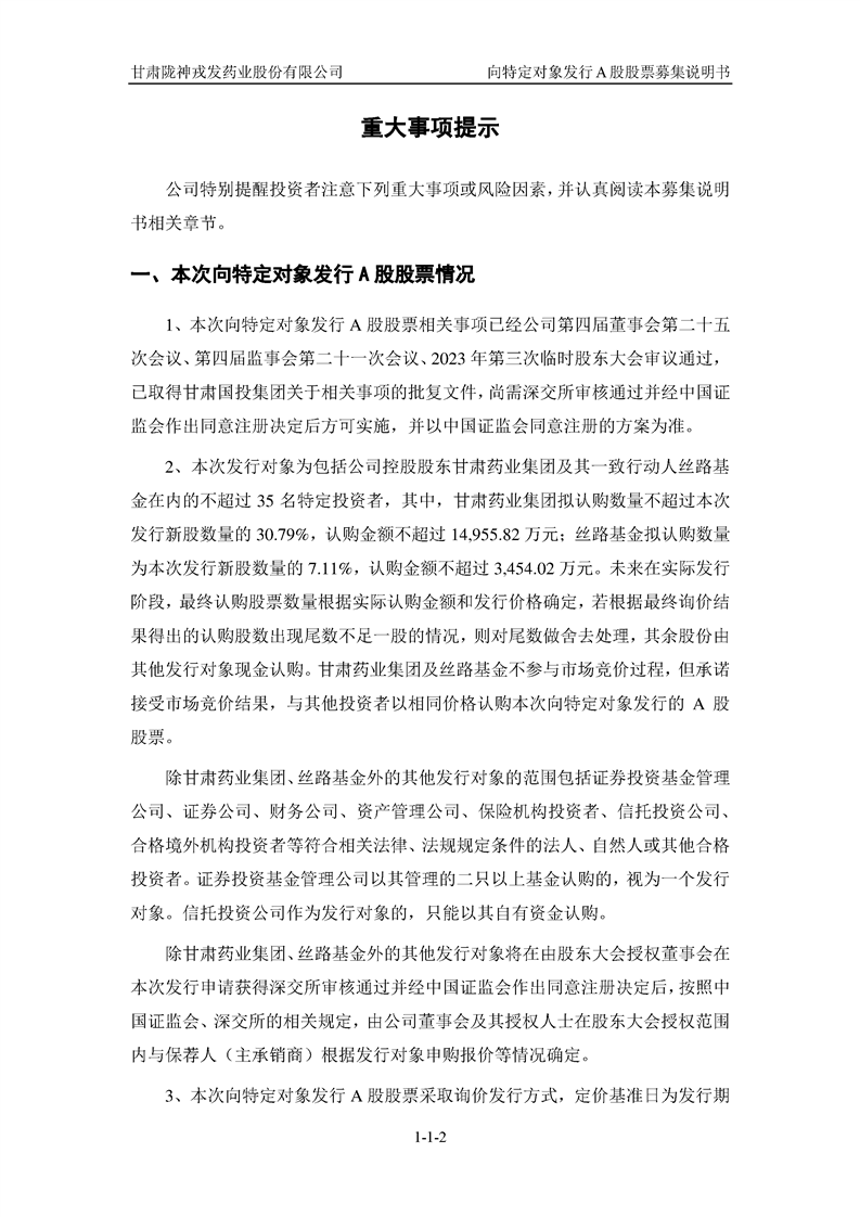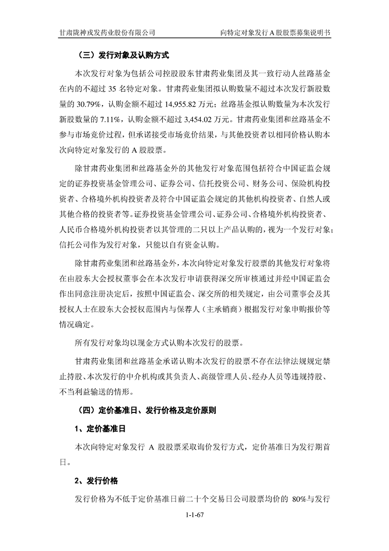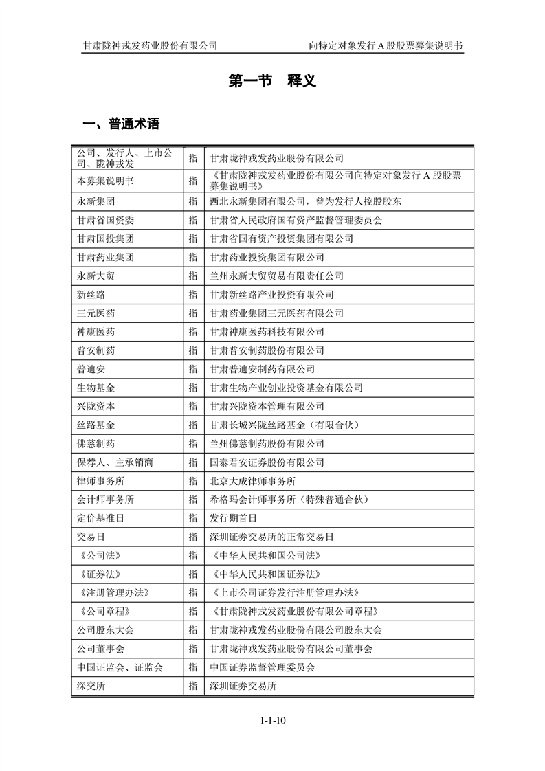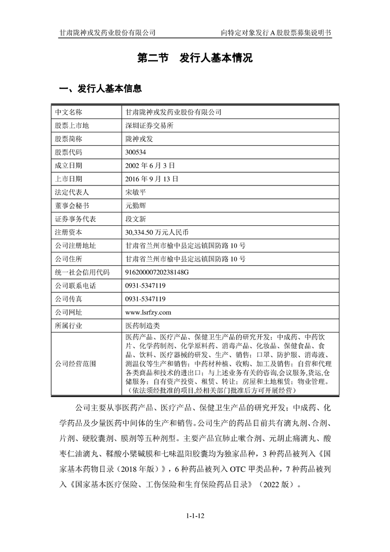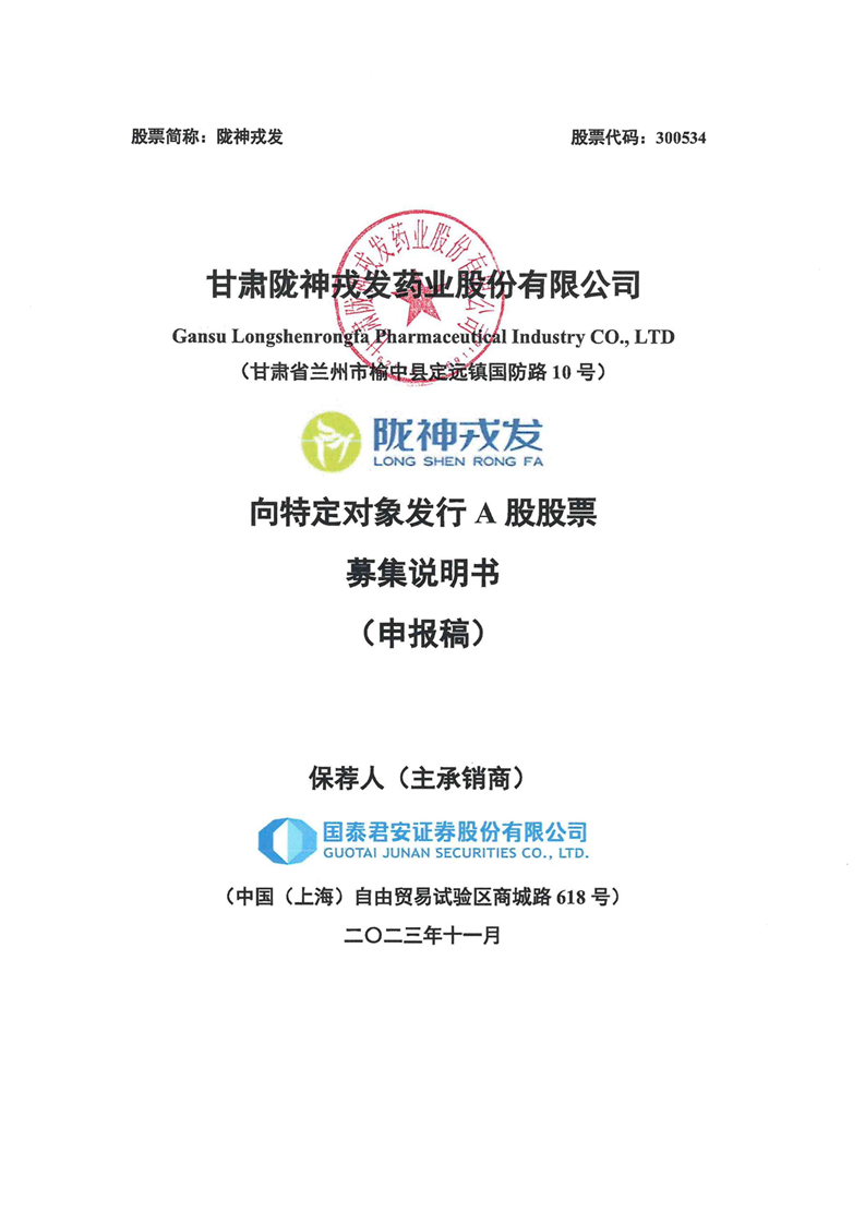 甘肅隴神戎發(fā)藥業(yè)股份有限公司向特定對象發(fā)行A股股票募集說明書(申報稿)