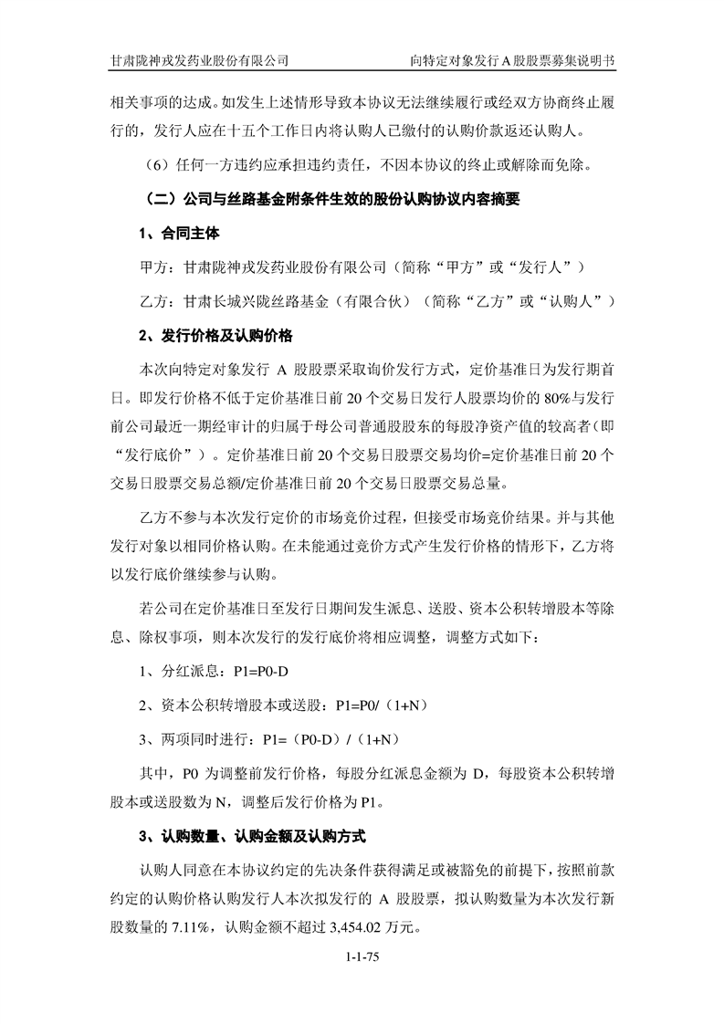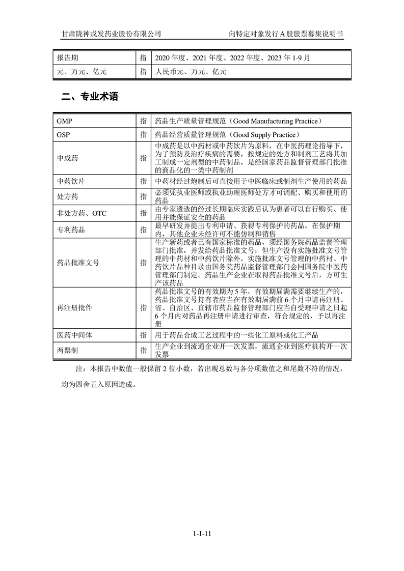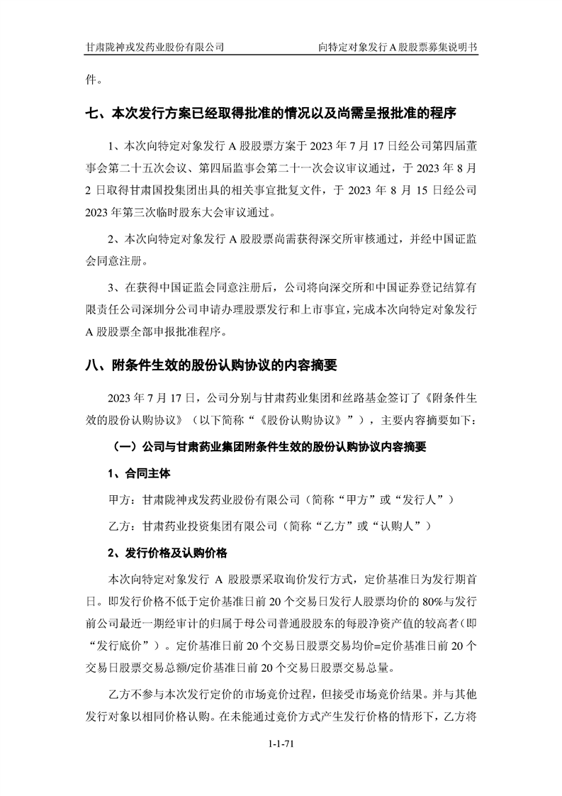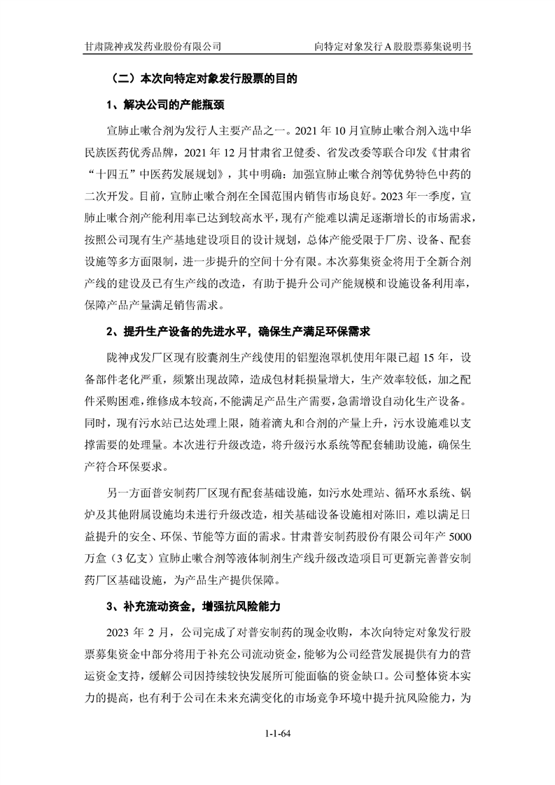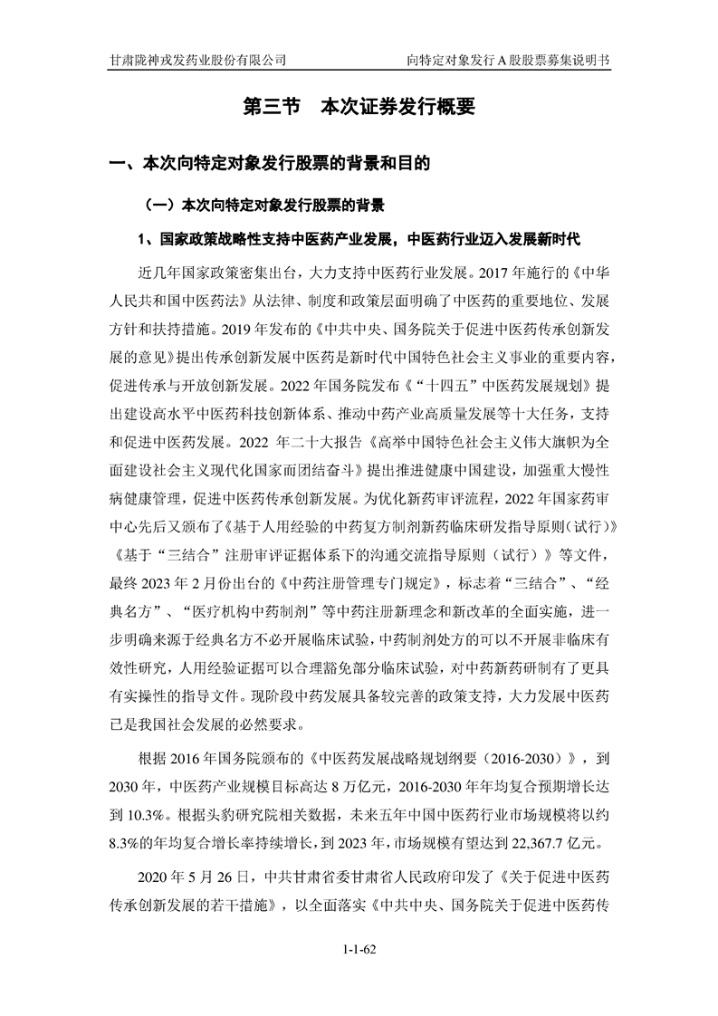 甘肅隴神戎發(fā)藥業(yè)股份有限公司向特定對象發(fā)行A股股票募集說明書(申報稿)