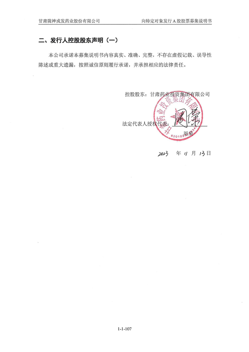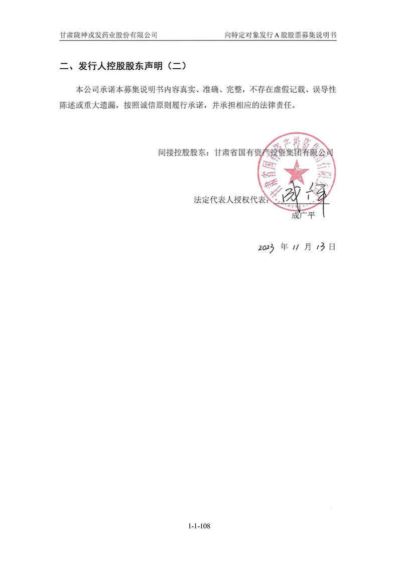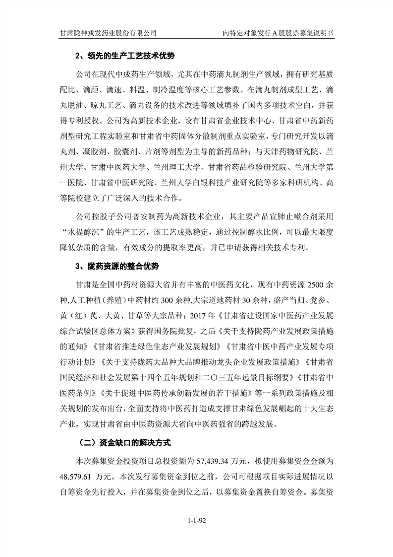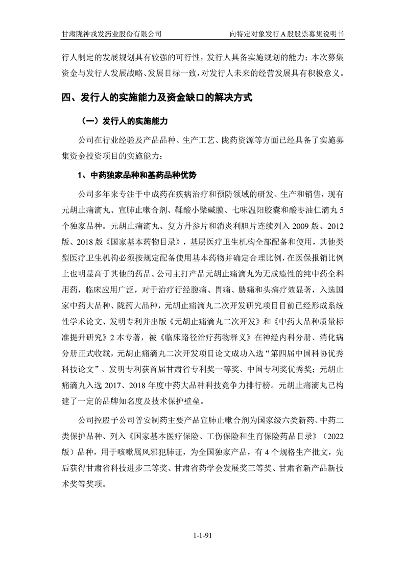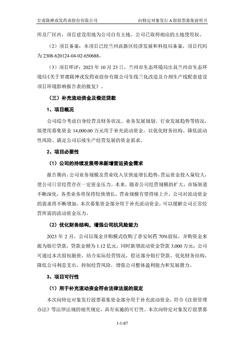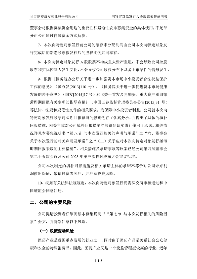 甘肅隴神戎發(fā)藥業(yè)股份有限公司向特定對象發(fā)行A股股票募集說明書(申報稿)