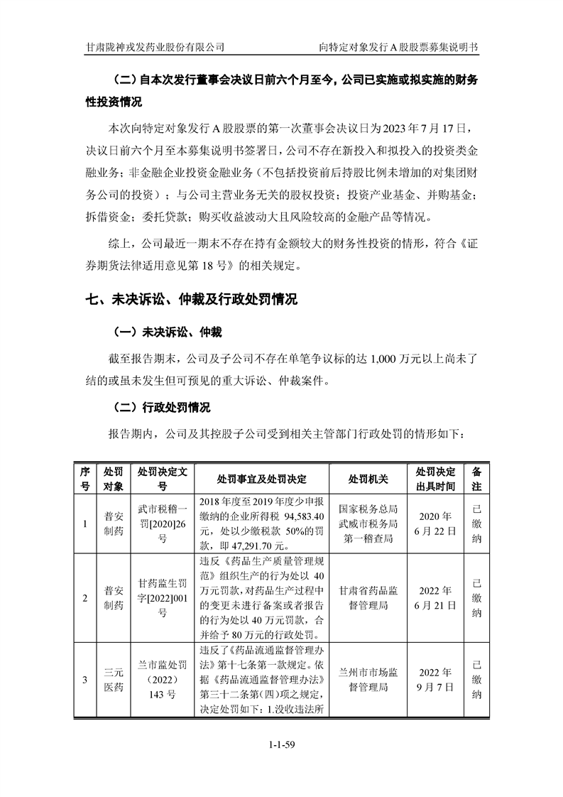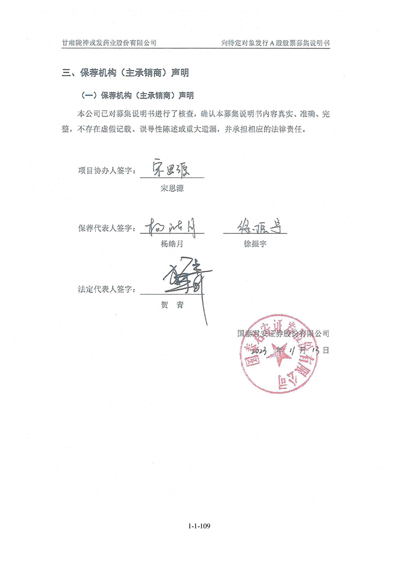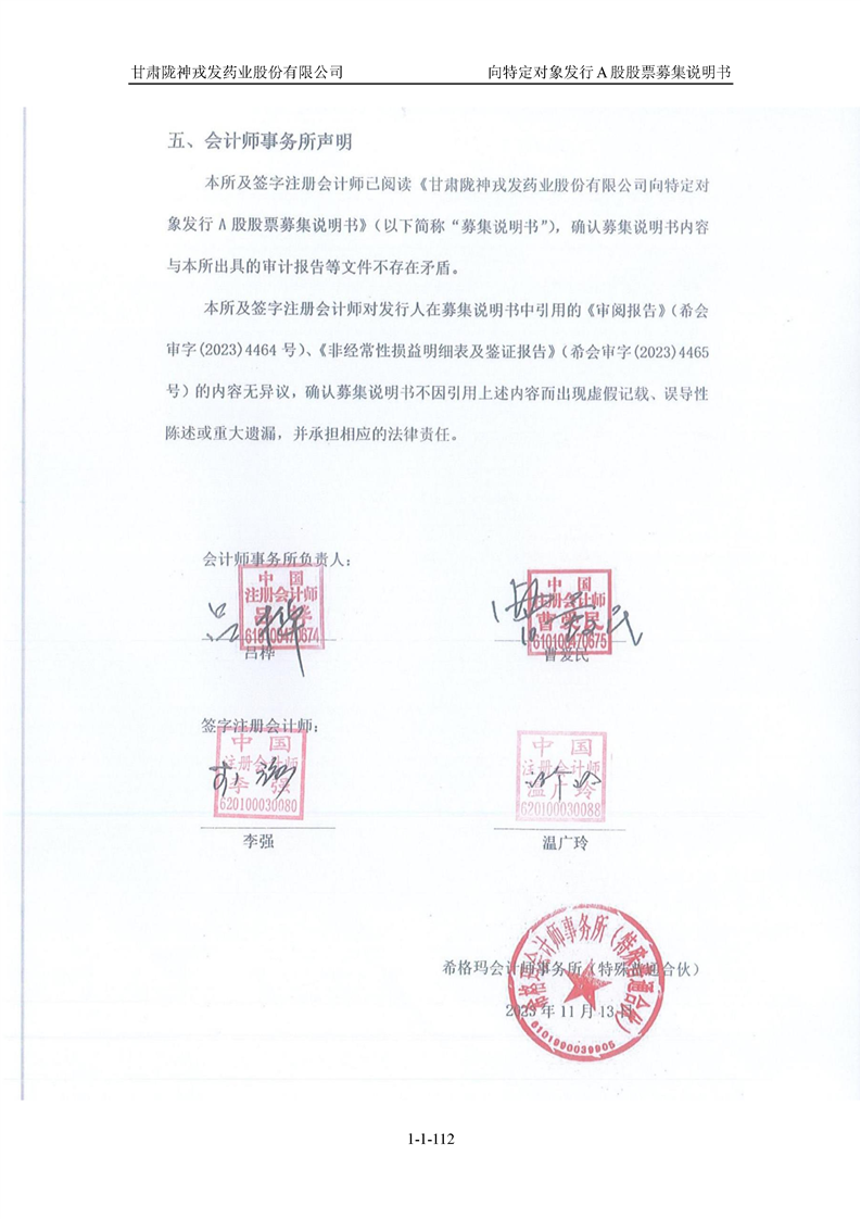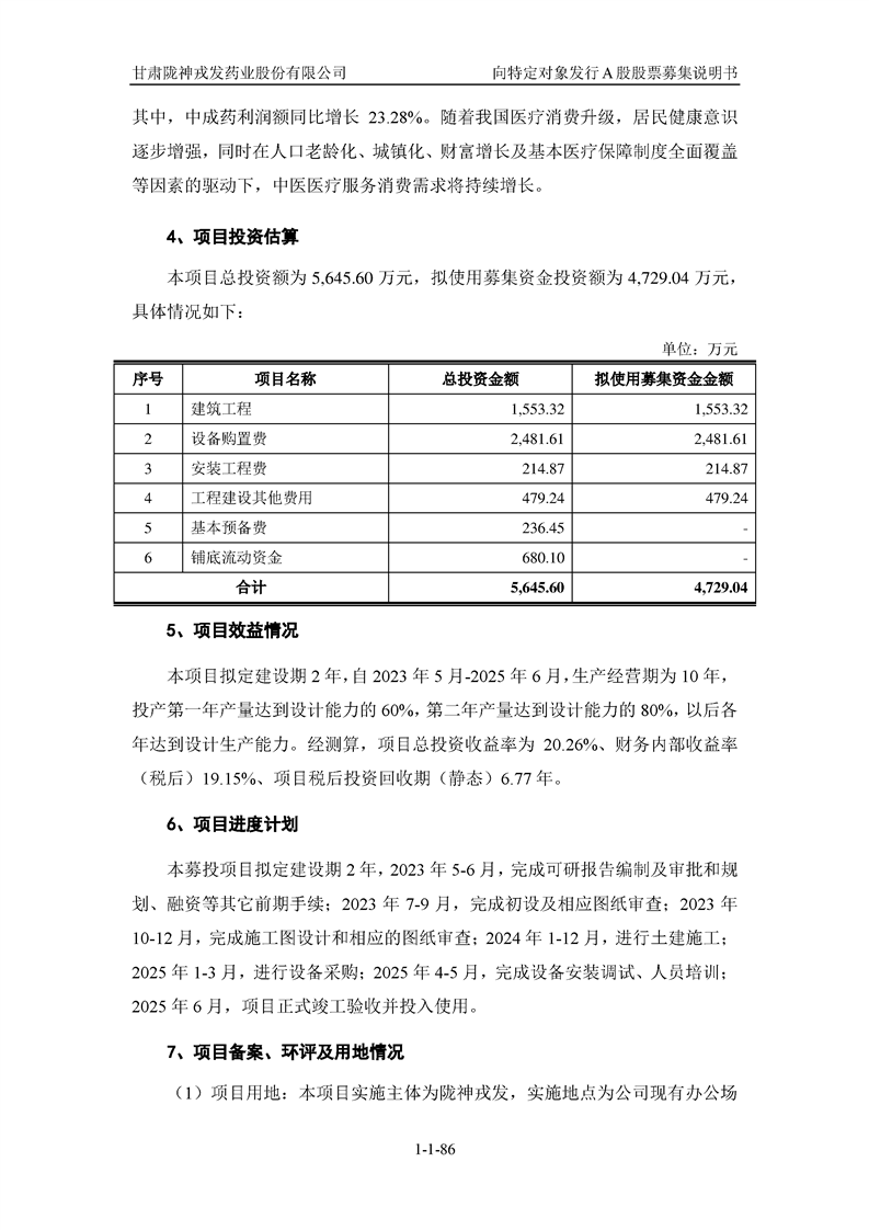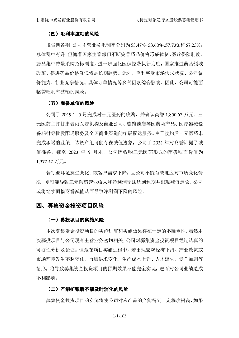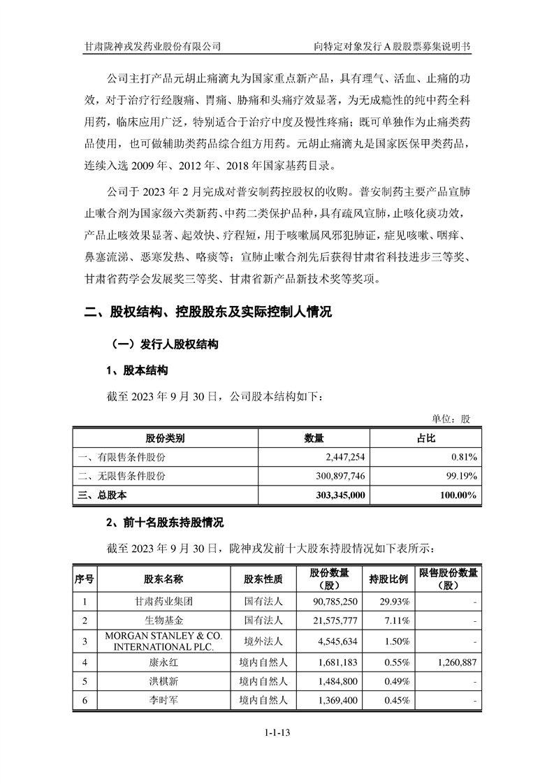 甘肅隴神戎發(fā)藥業(yè)股份有限公司向特定對象發(fā)行A股股票募集說明書(申報稿)