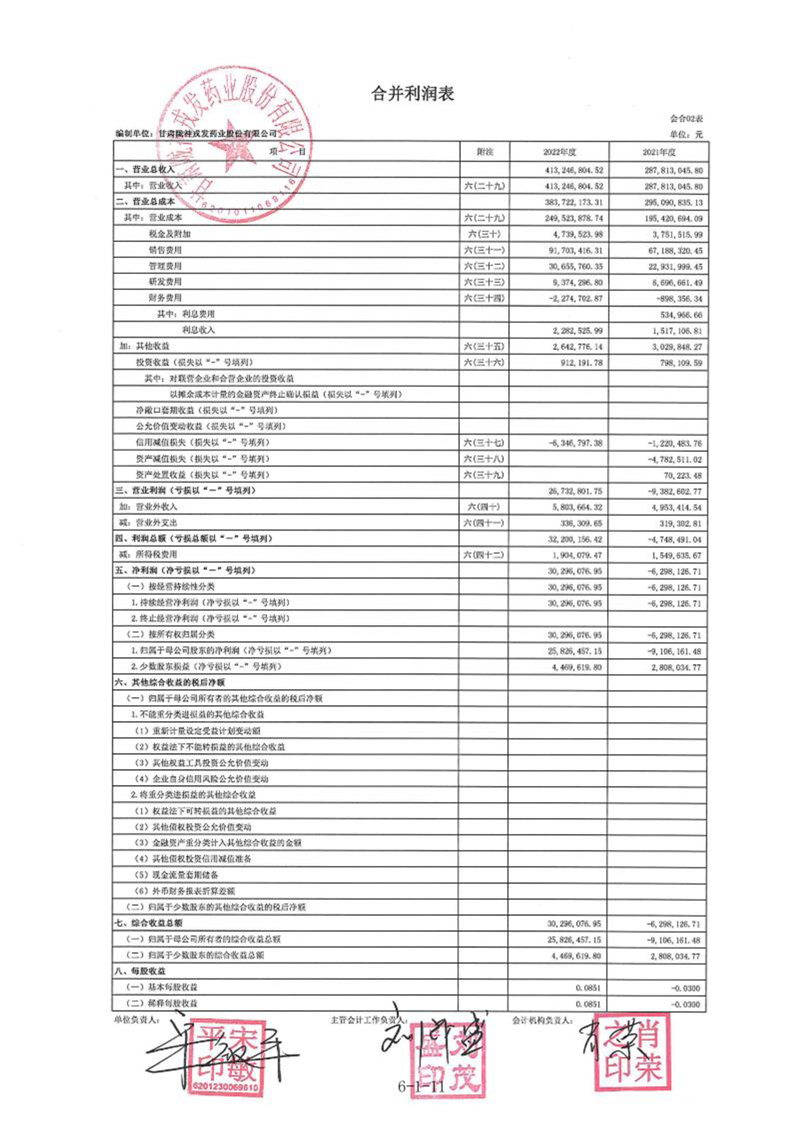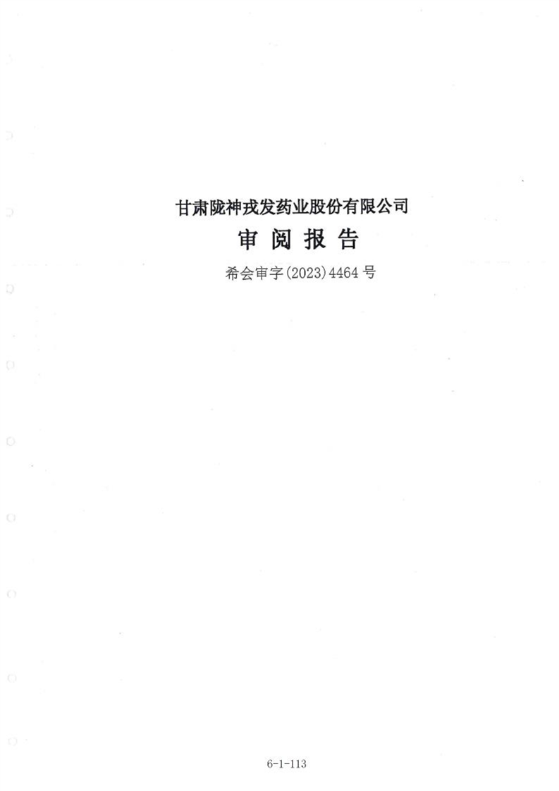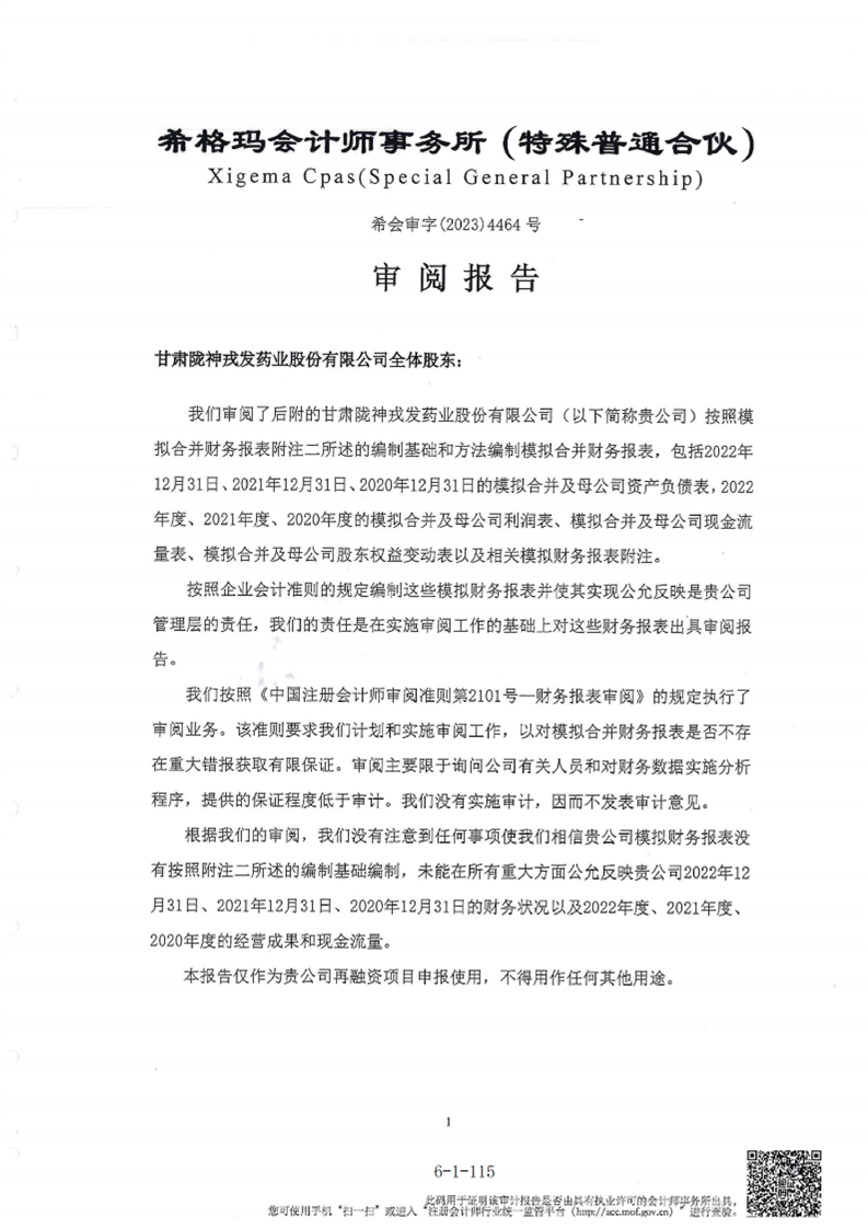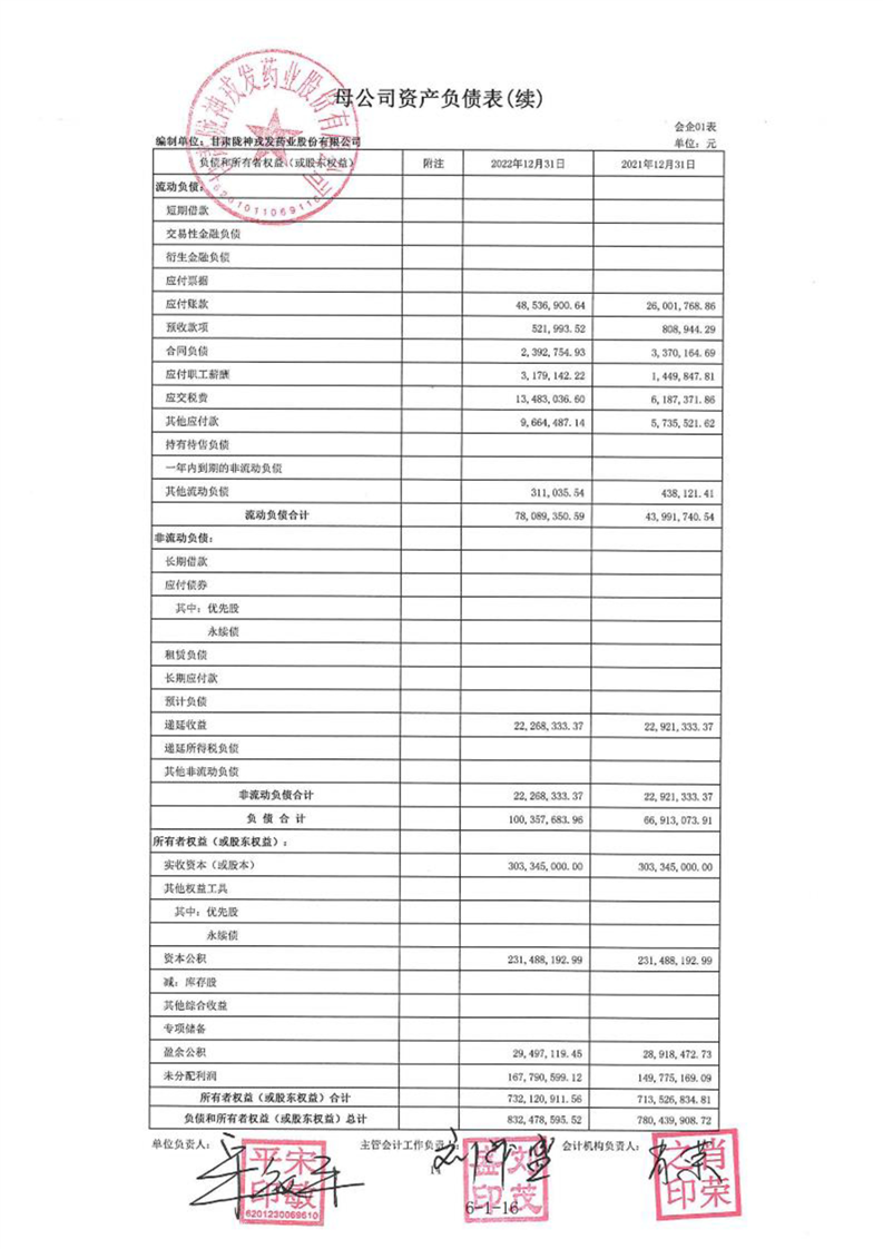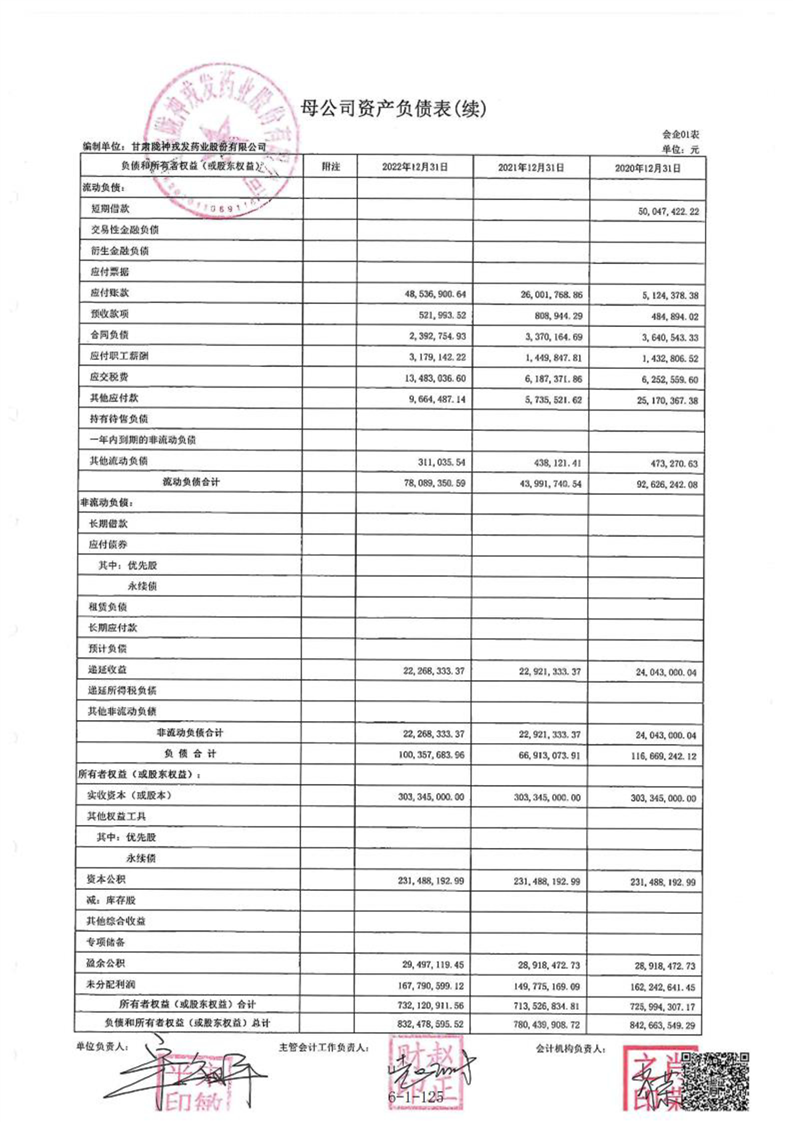 甘肅隴神戎發(fā)藥業(yè)股份有限公司最近一年的財務(wù)報告及其審計報告以及最近一期的財務(wù)報告