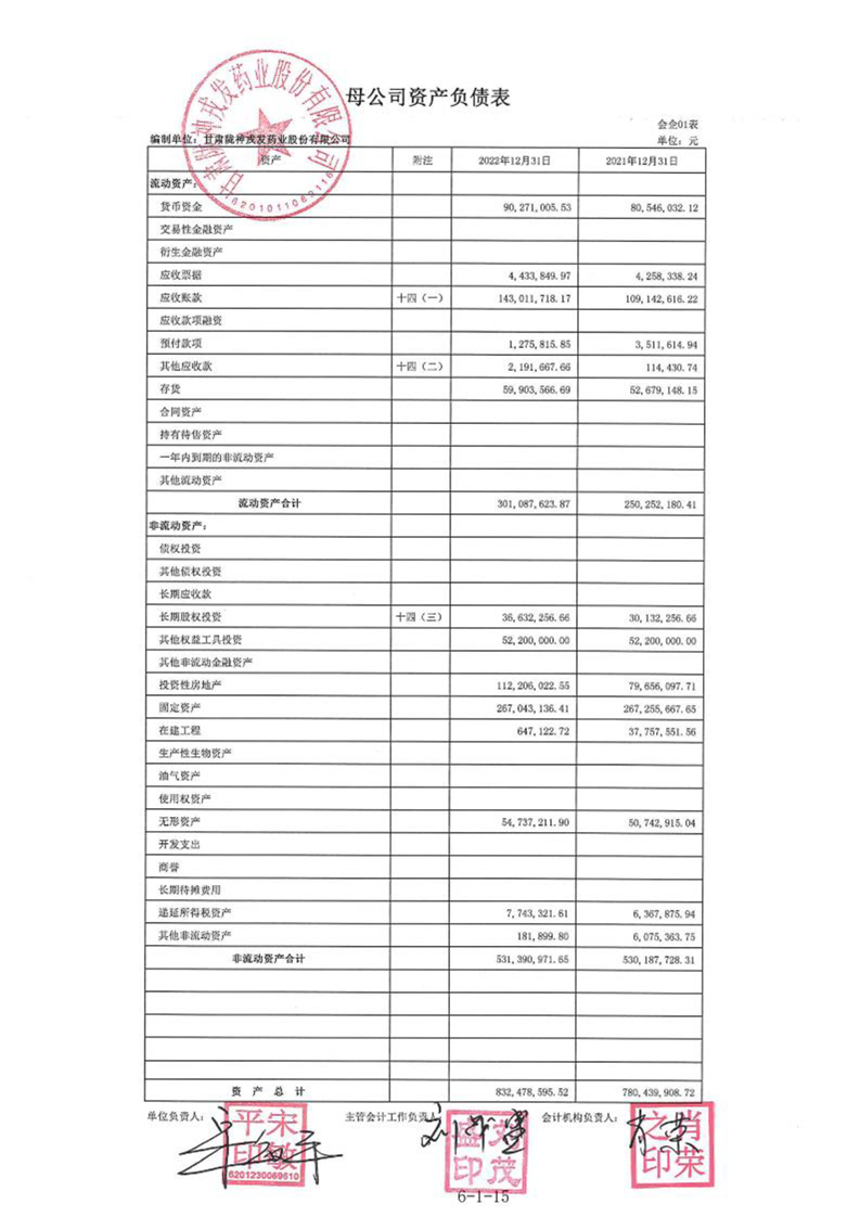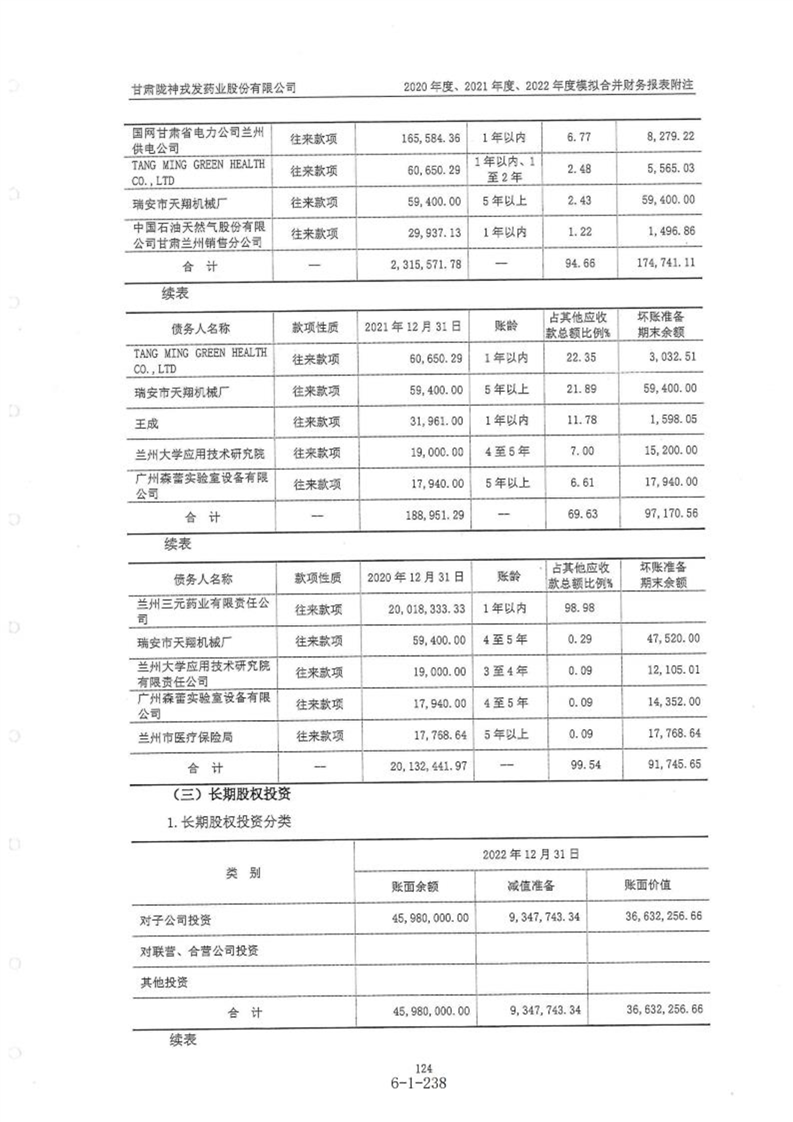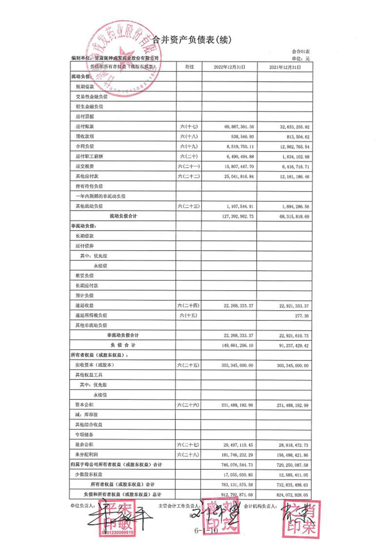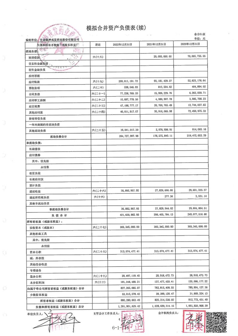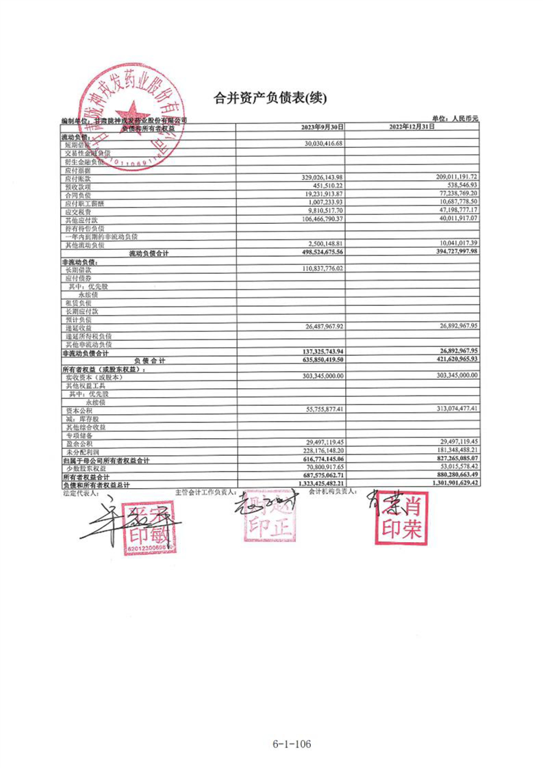 甘肅隴神戎發(fā)藥業(yè)股份有限公司最近一年的財務(wù)報告及其審計報告以及最近一期的財務(wù)報告