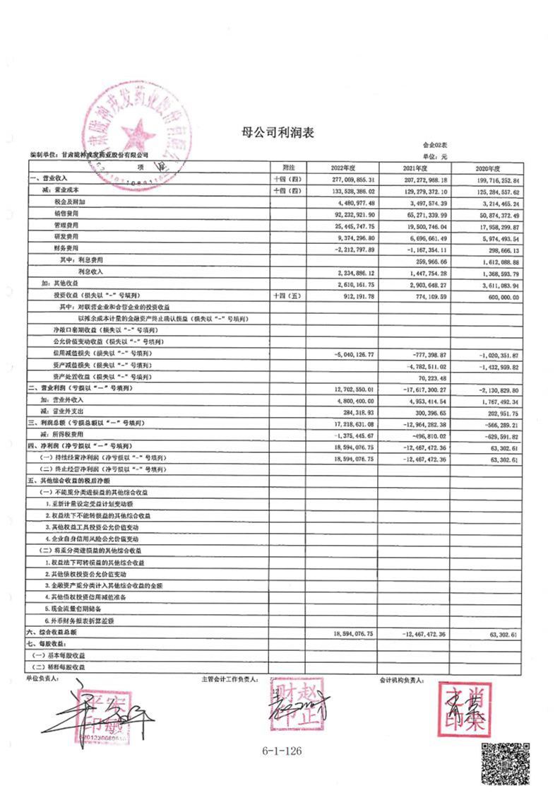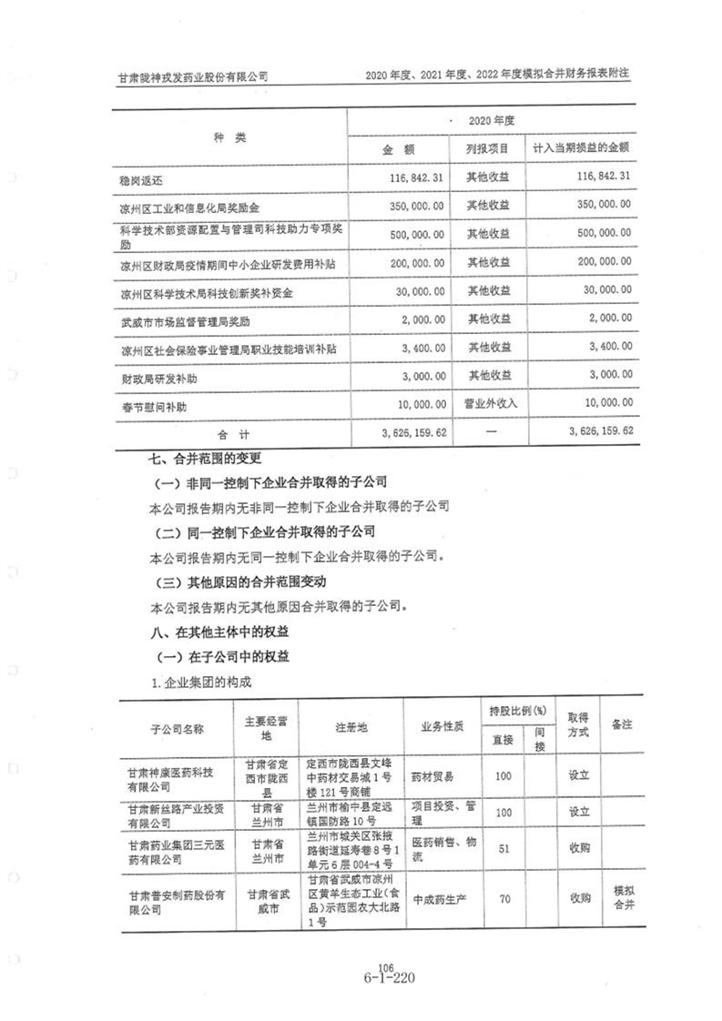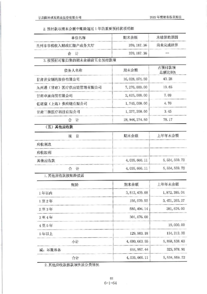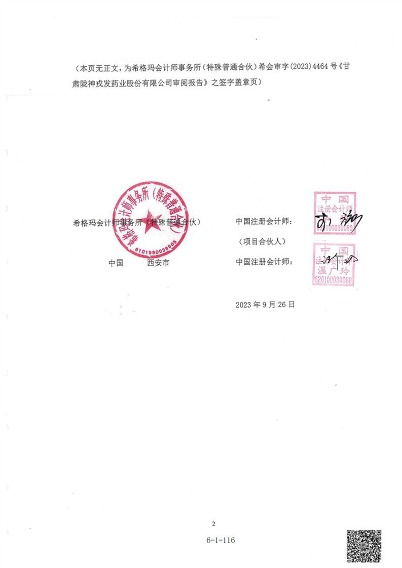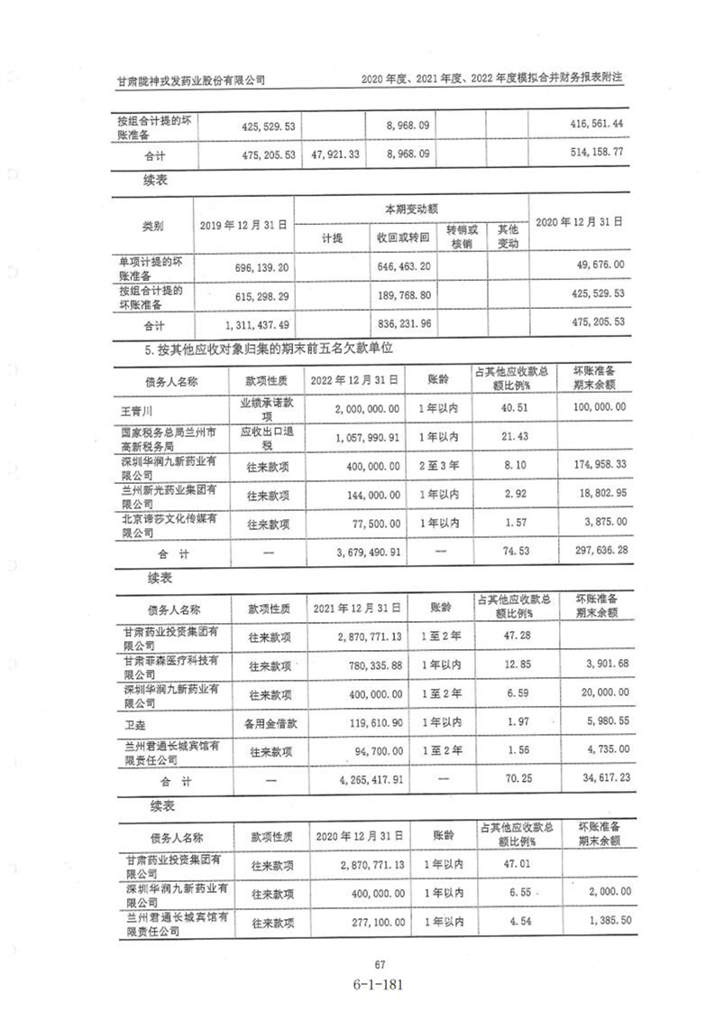 甘肅隴神戎發(fā)藥業(yè)股份有限公司最近一年的財務(wù)報告及其審計報告以及最近一期的財務(wù)報告