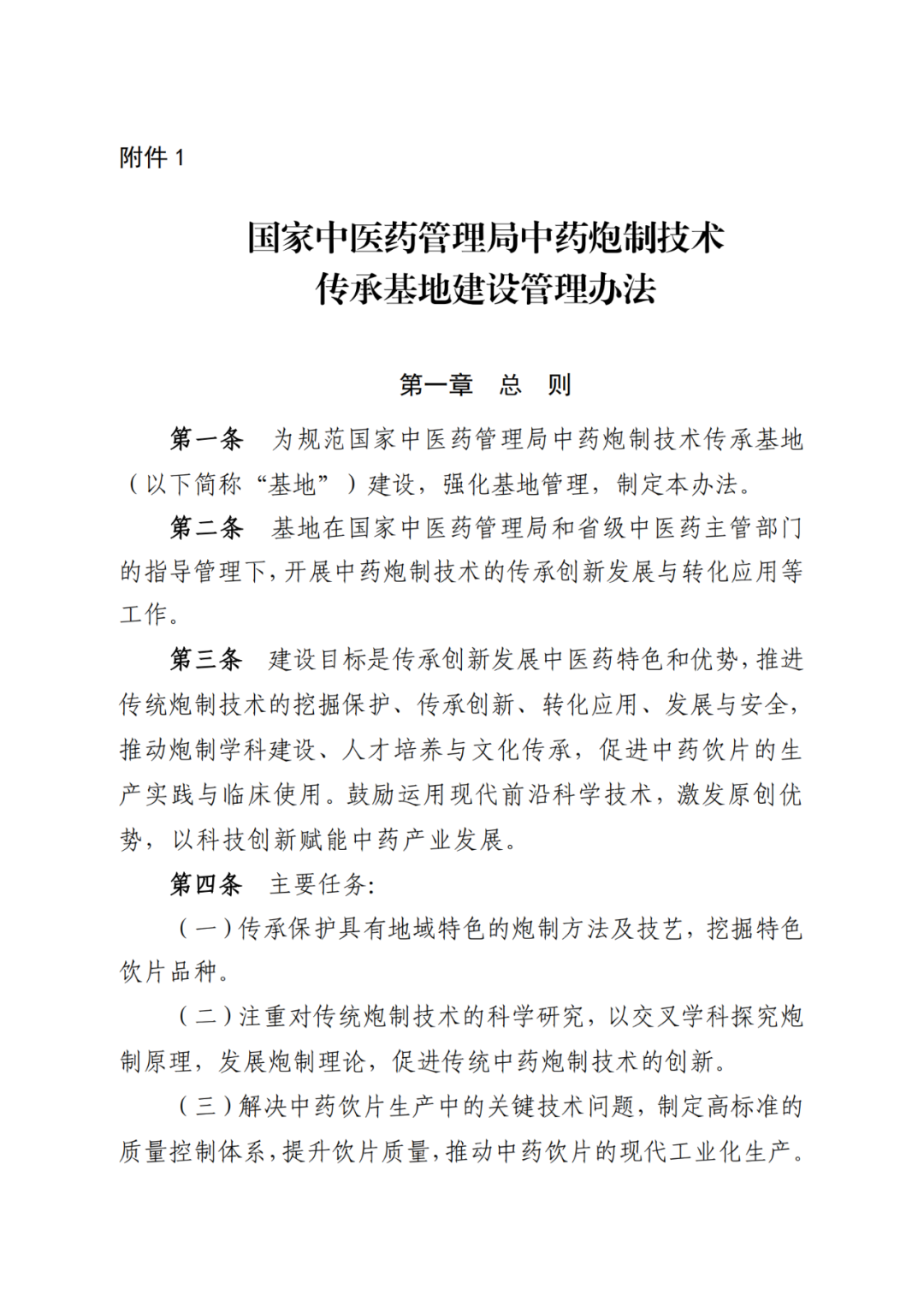 附件:1.國家中醫(yī)藥管理局中藥炮制技術(shù)傳承基地建設(shè)管理辦法
