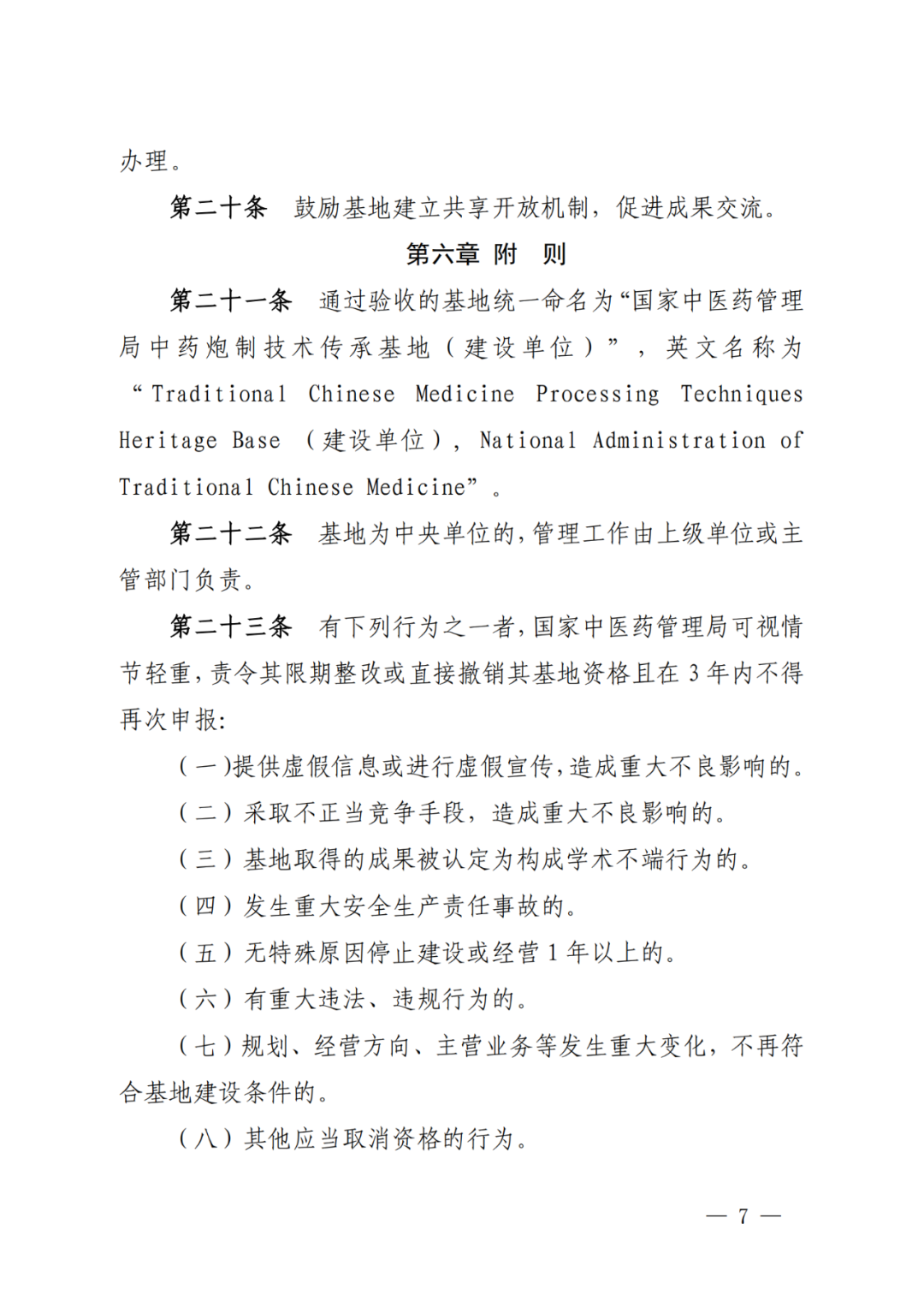國家中醫(yī)藥局關(guān)于印發(fā)中藥炮制技術(shù)傳承基地建設(shè)管理辦法及建設(shè)標(biāo)準(zhǔn)的通知