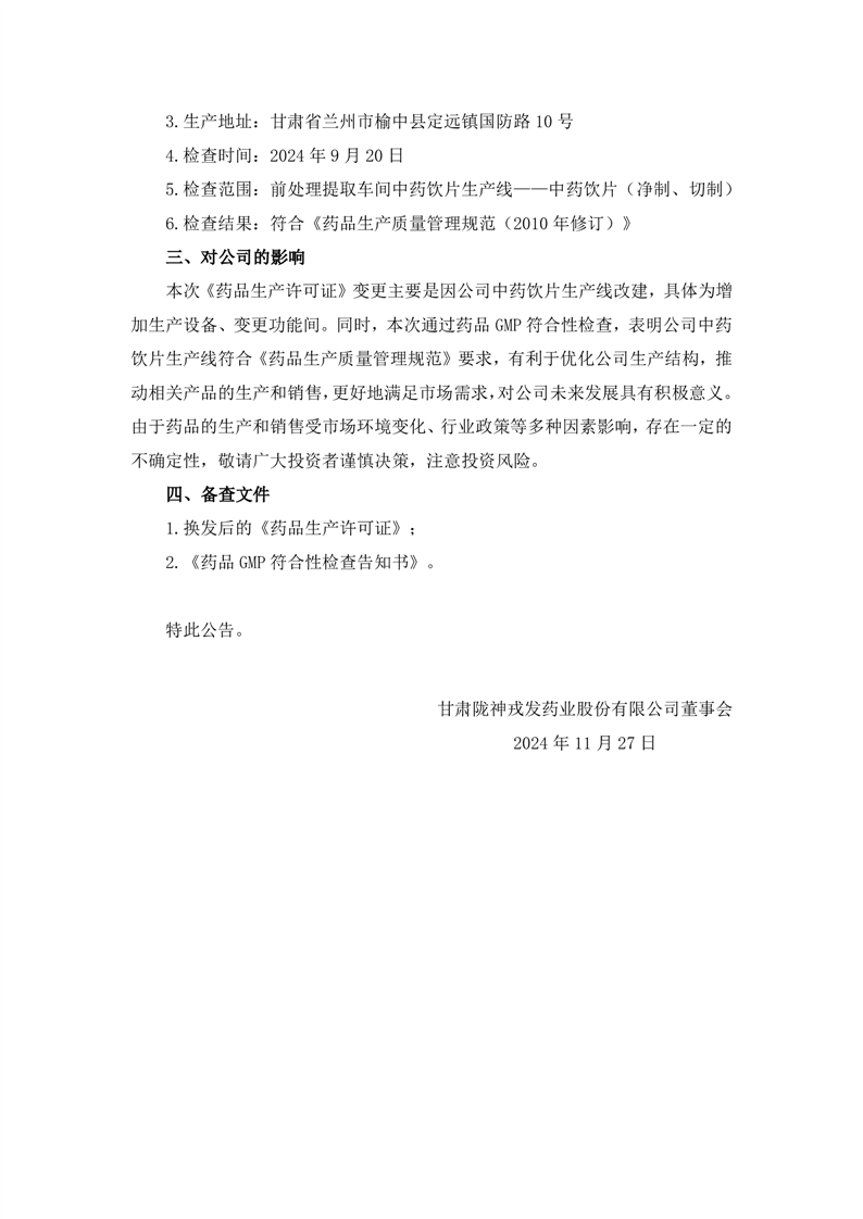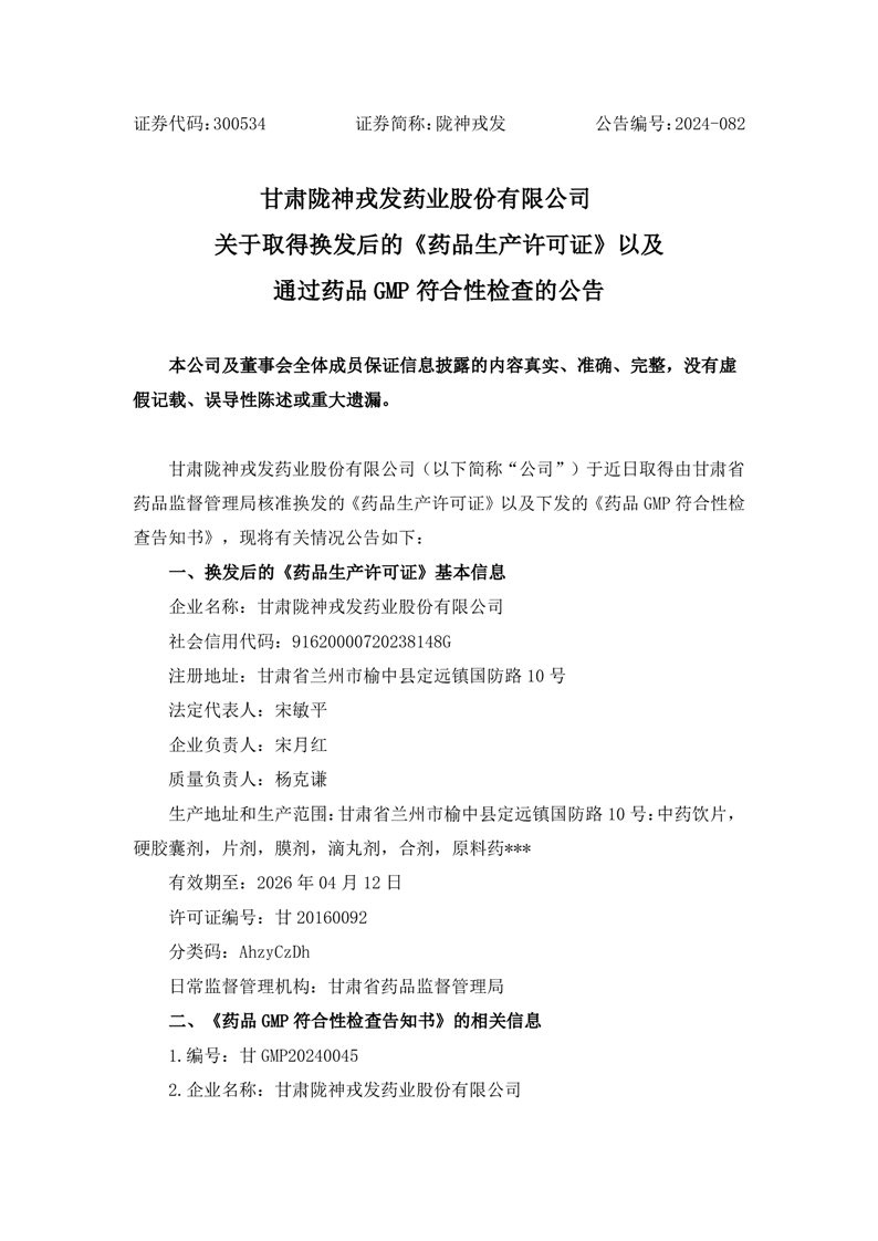 關于取得換發(fā)后的《藥品生產(chǎn)許可證》以及通過藥品GMP符合性檢查的公告