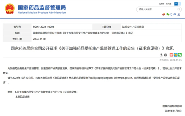 國家藥監(jiān)局公開征求《關(guān)于加強(qiáng)藥品受托生產(chǎn)監(jiān)督管理工作的公告(征求意見稿)》意見
