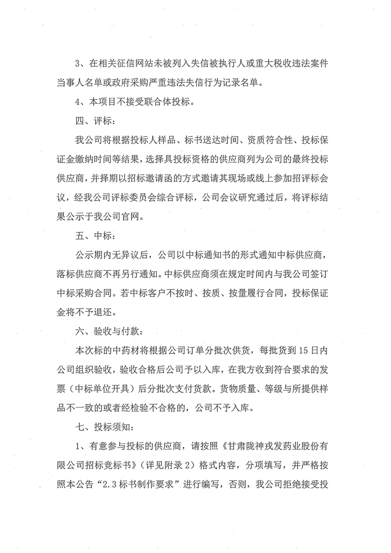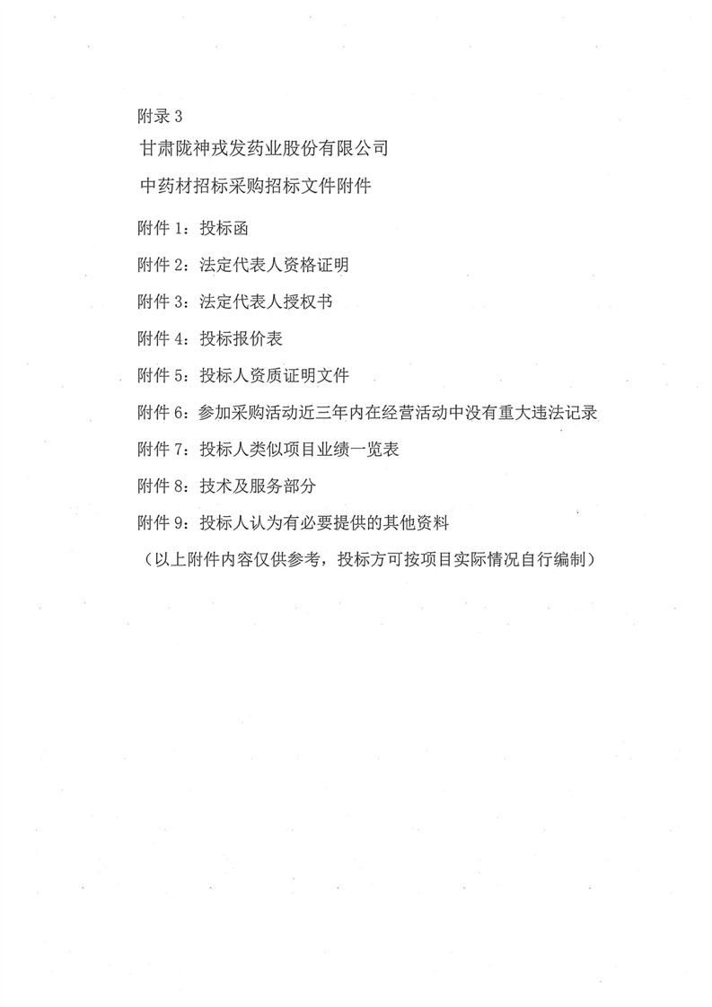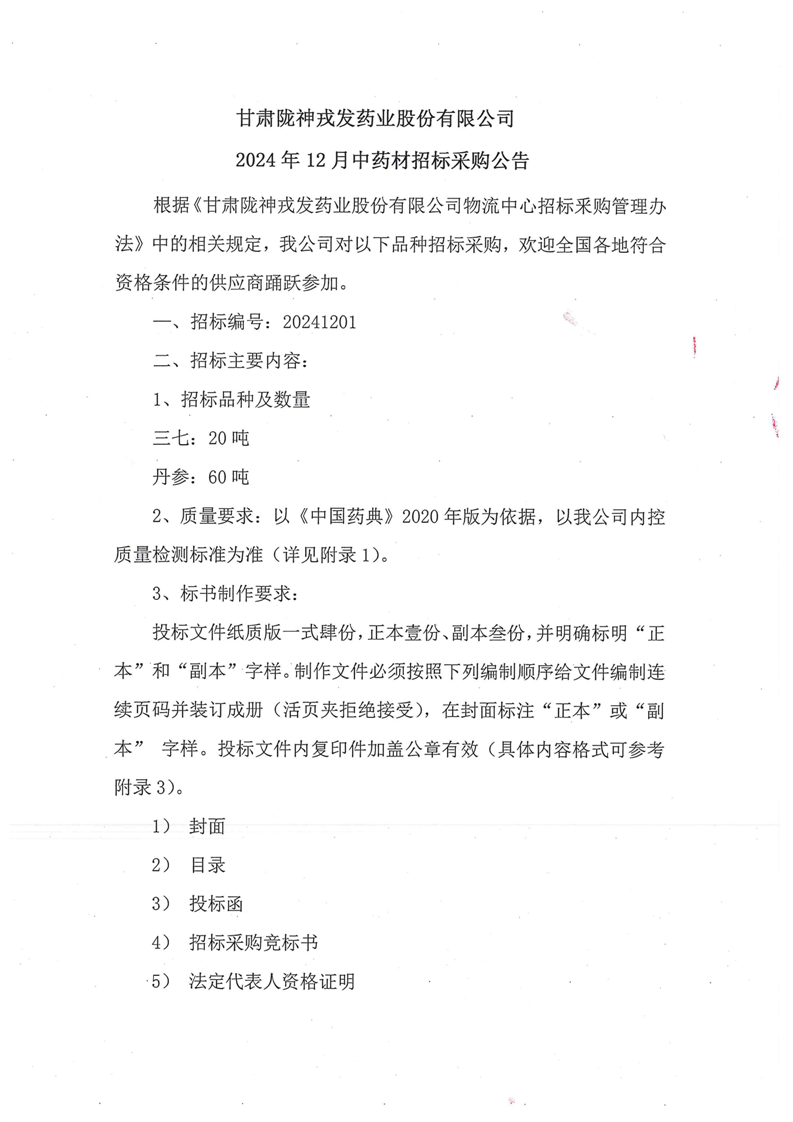 甘肅隴神戎發(fā)藥業(yè)股份有限公司2024年12月中藥材招標(biāo)采購公告