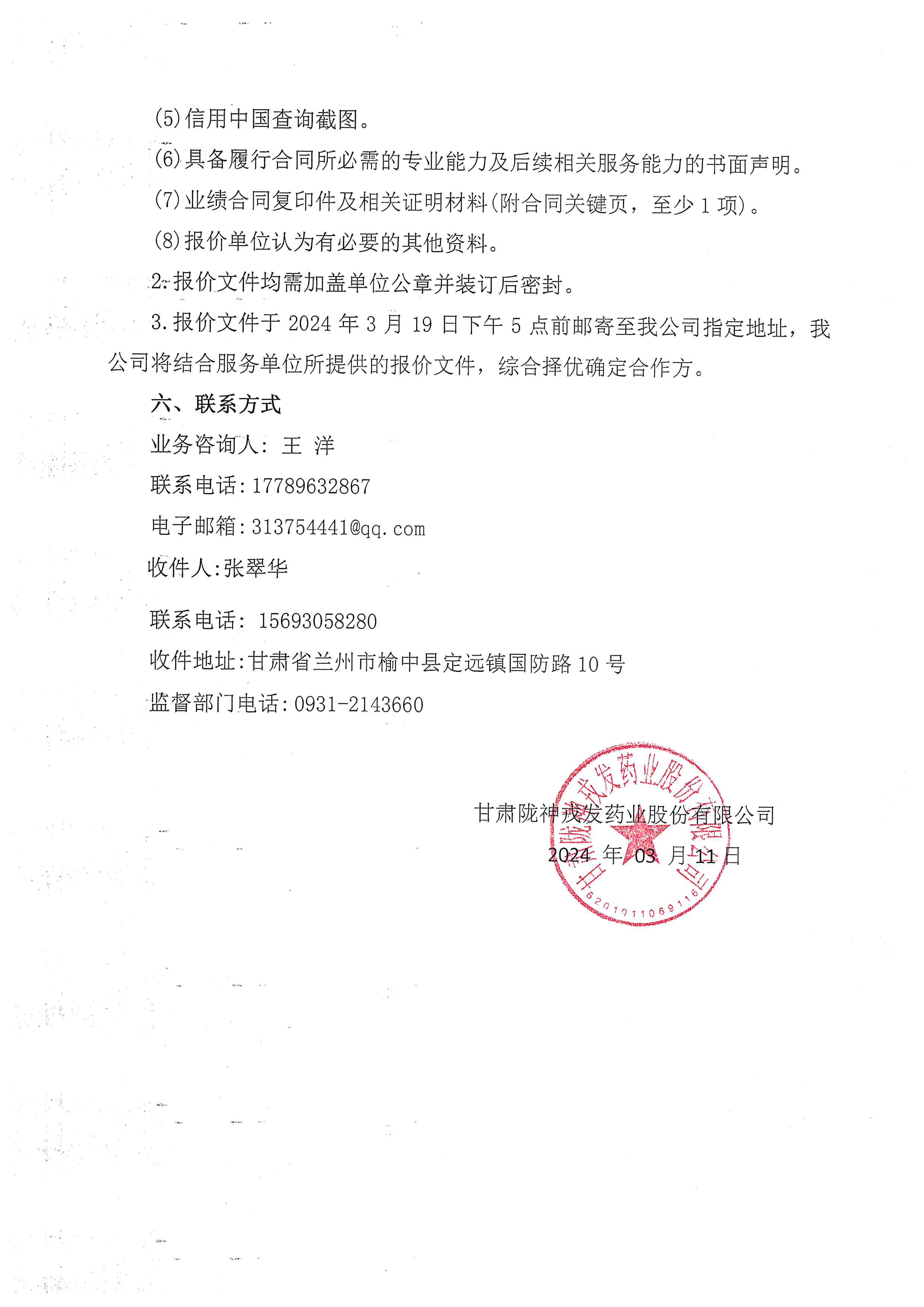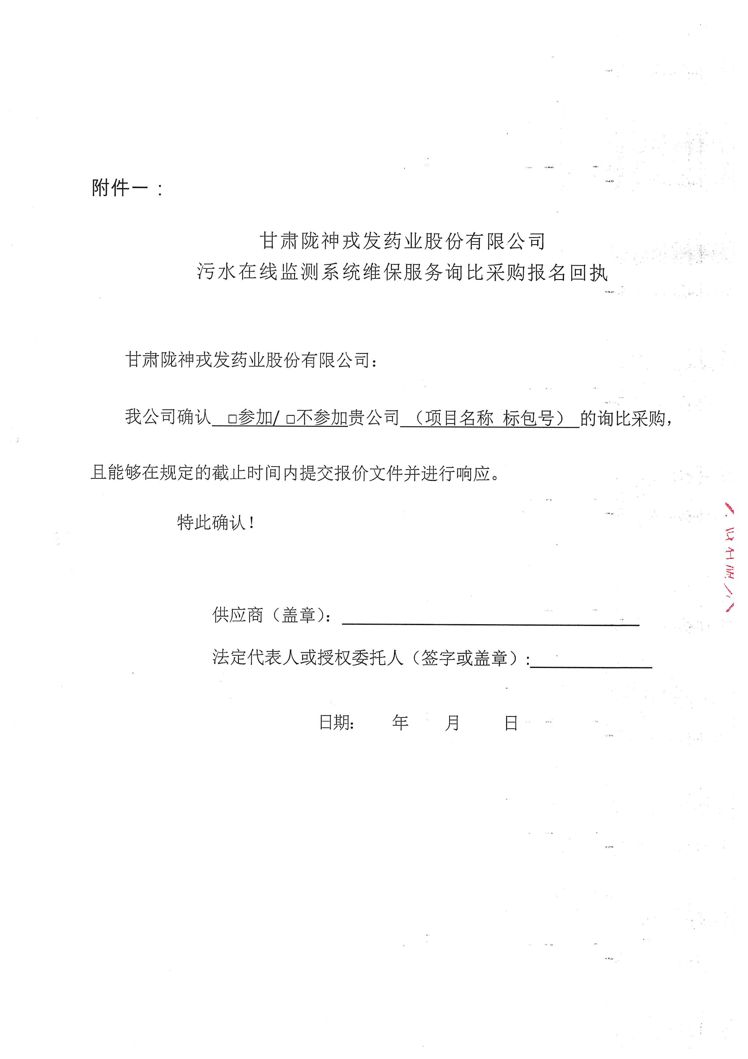 甘肅隴神戎發(fā)藥業(yè)股份有限公司污水在線監(jiān)測(cè)系統(tǒng)維保服務(wù)詢比采購(gòu)公告