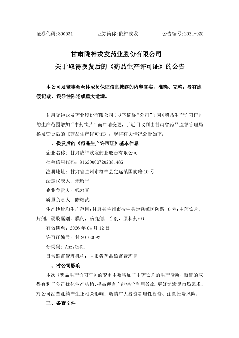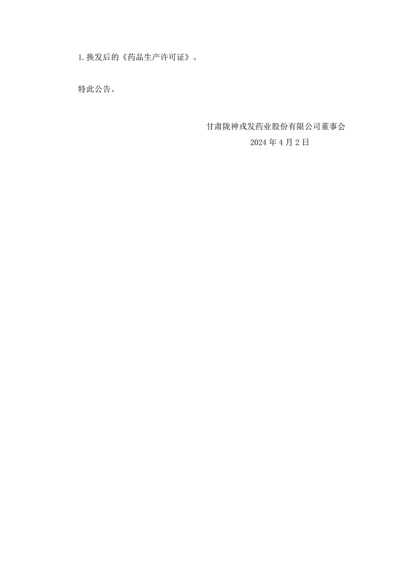 關于取得換發(fā)后的《藥品生產許可證》的公告
