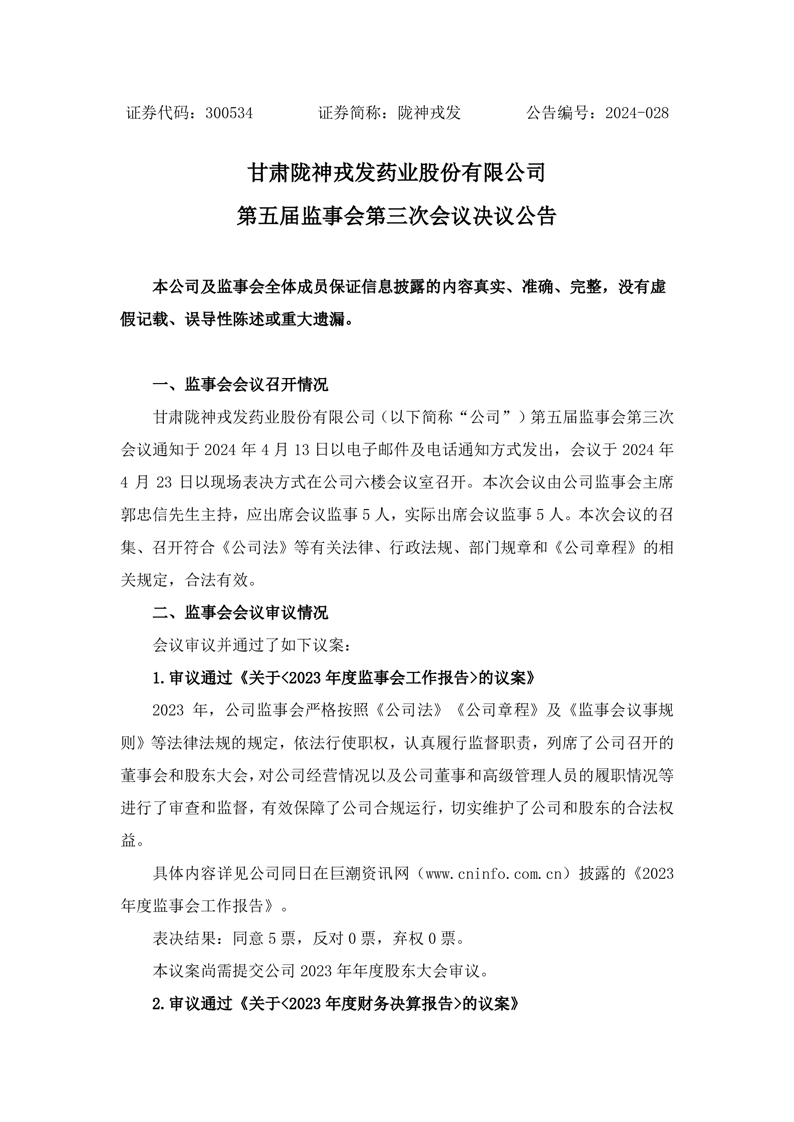 監(jiān)事會(huì)決議公告