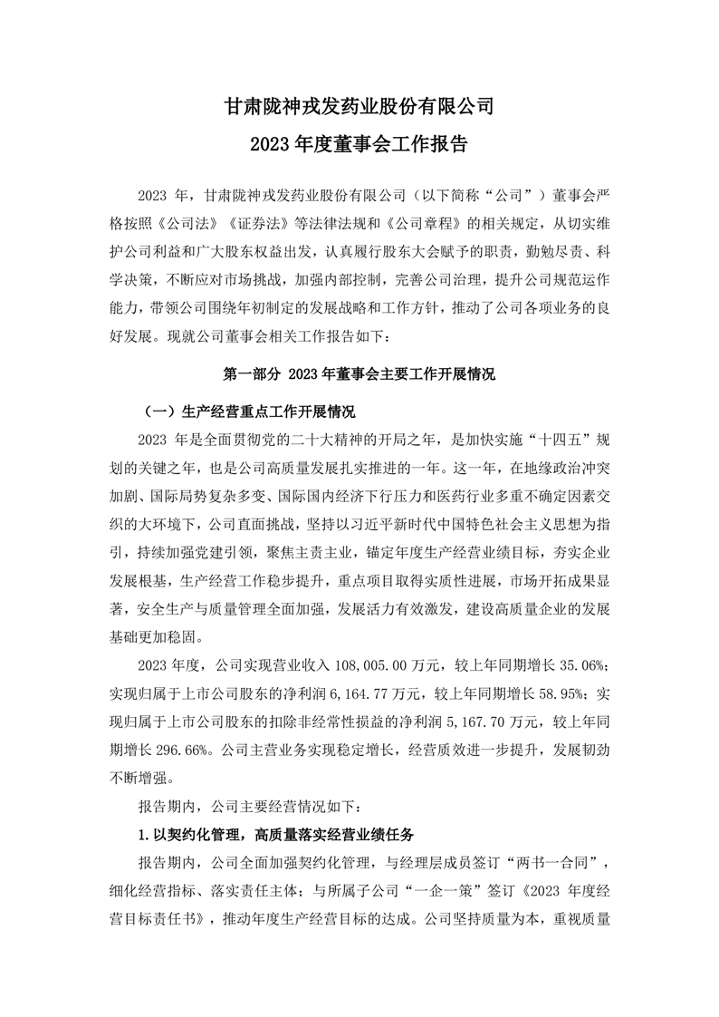 2023年度董事會工作報(bào)告